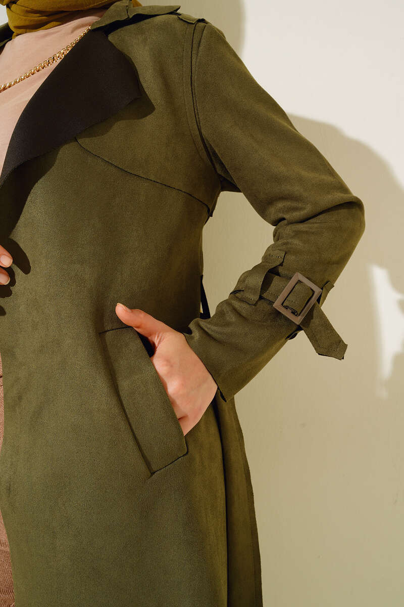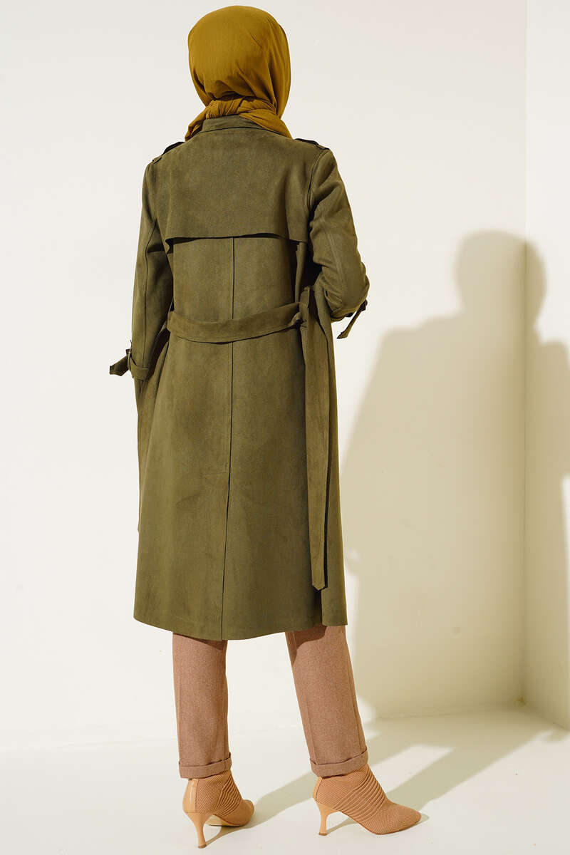 Kuşaklı Araboy Süet Trençkot Haki