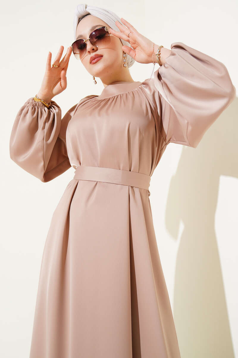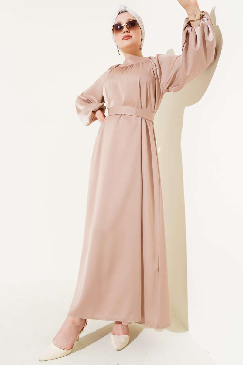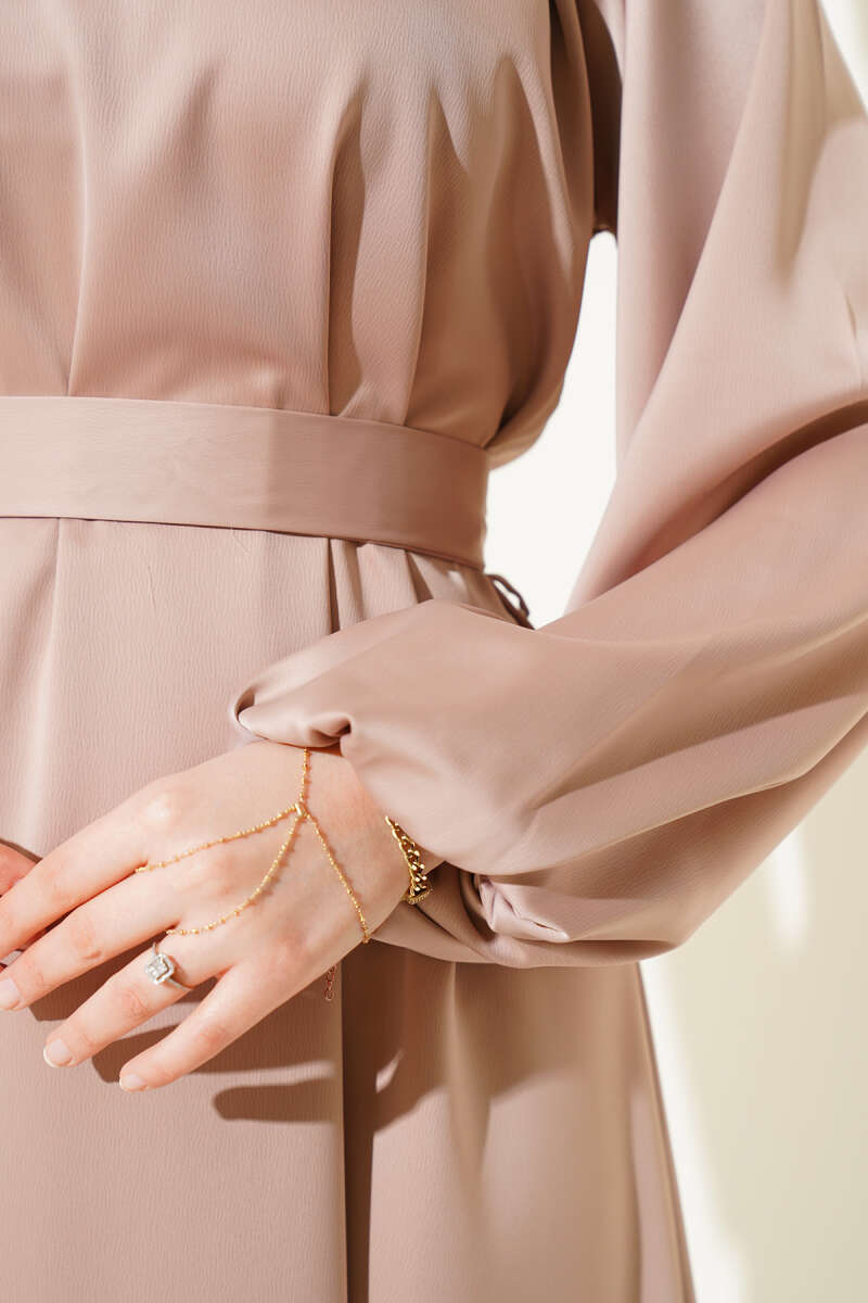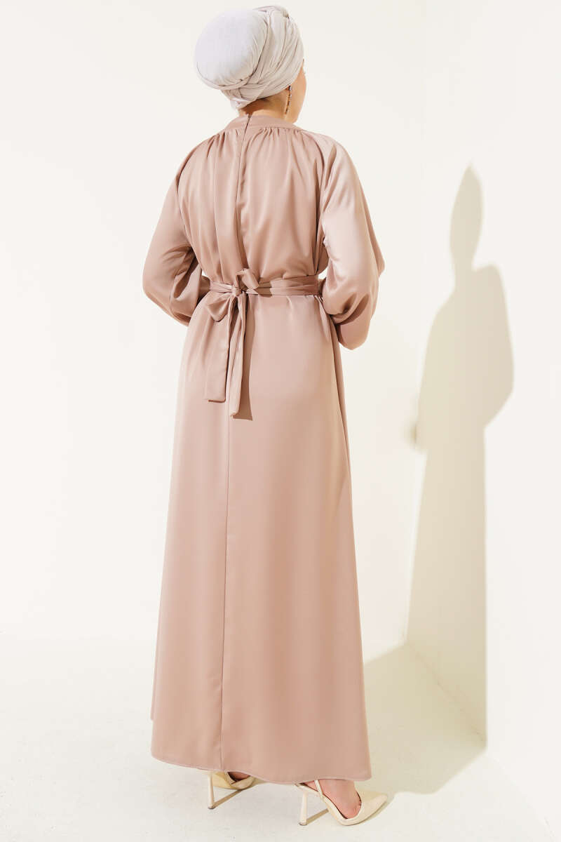 Bilek Bağlamalı Kuşaklı Abiye Elbise Haki
