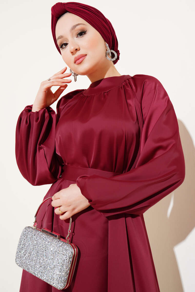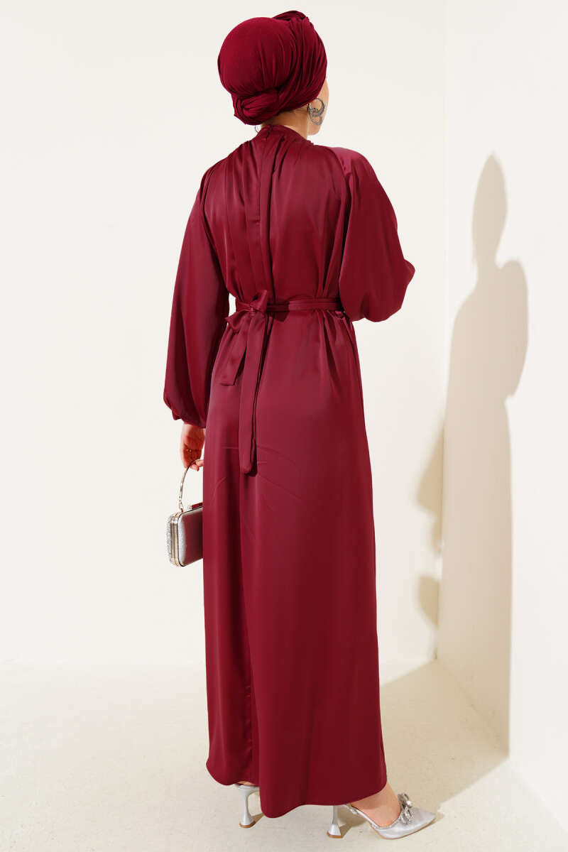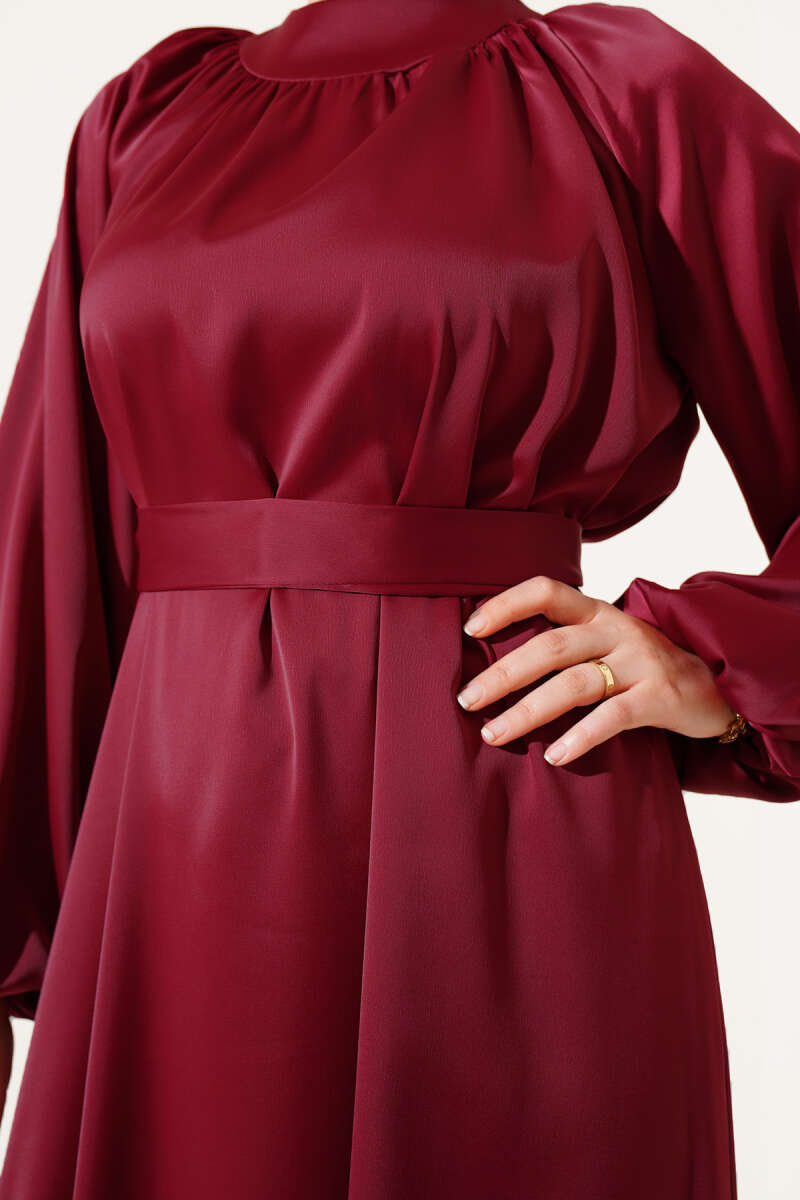 Dik Fitilli Kuşaklı Basic Elbise Bordo