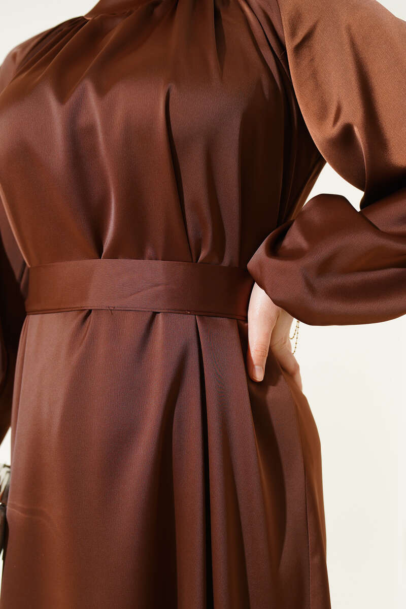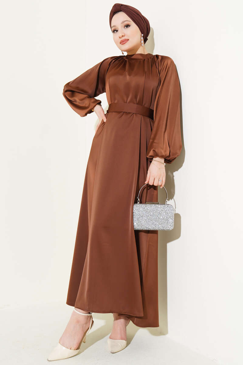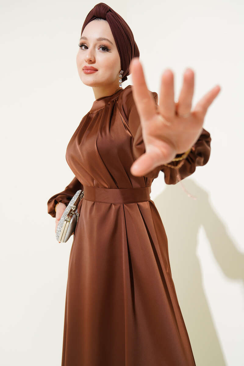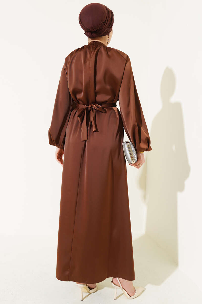 Bilek Bağlamalı Kuşaklı Abiye Elbise Haki