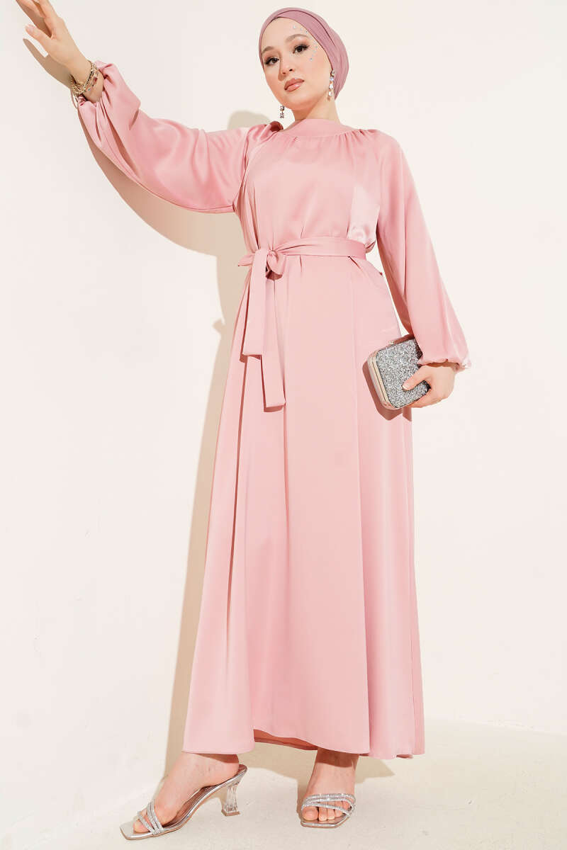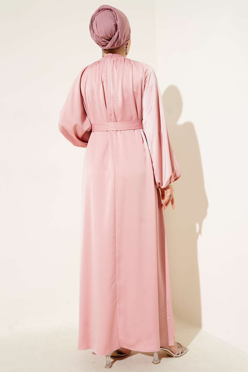 Bilek Bağlamalı Kuşaklı Abiye Elbise Haki