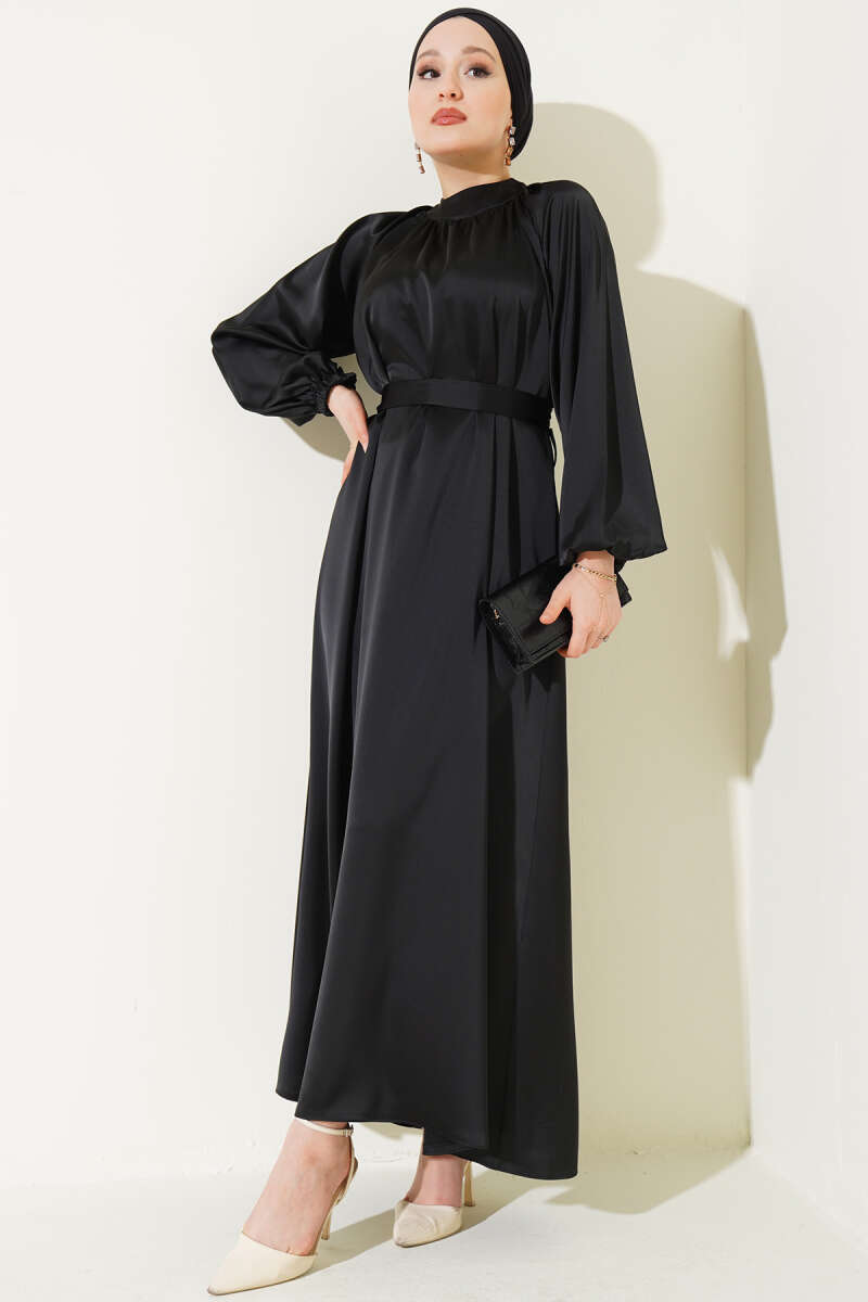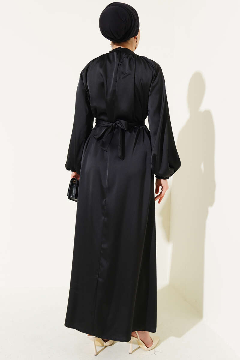 Önü Büzgülü Pul Payet Abiye Elbise Siyah