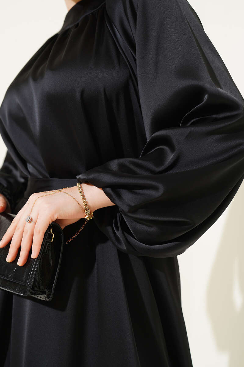 Pötikareli Yanları Büzgü Detay Siyah Tunik