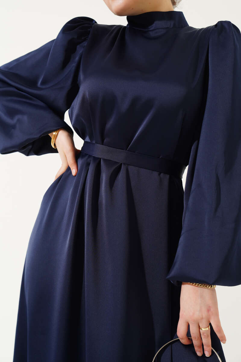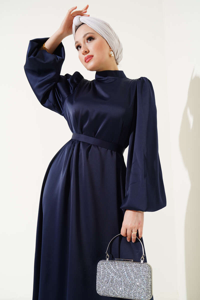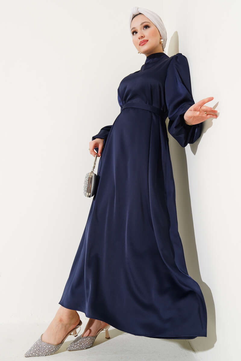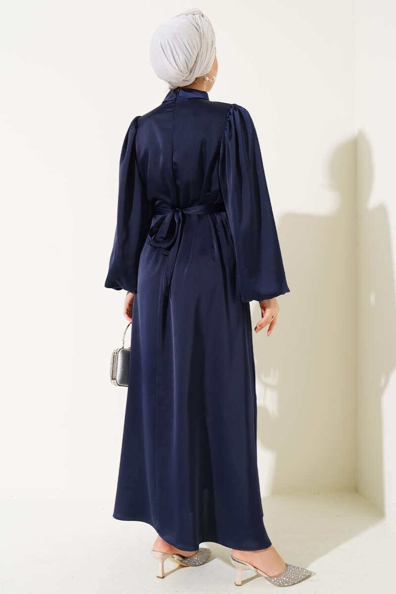 Gül Detaylı Pelerinli Abiye Elbise Lacivert