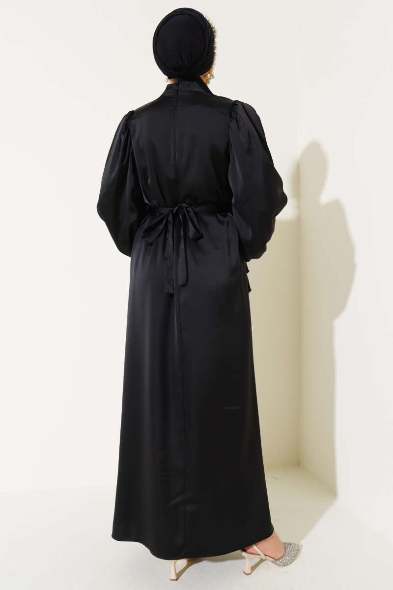 Gül Detaylı Pelerinli Abiye Elbise Haki
