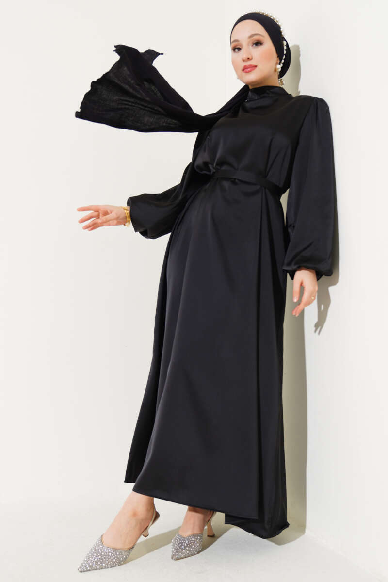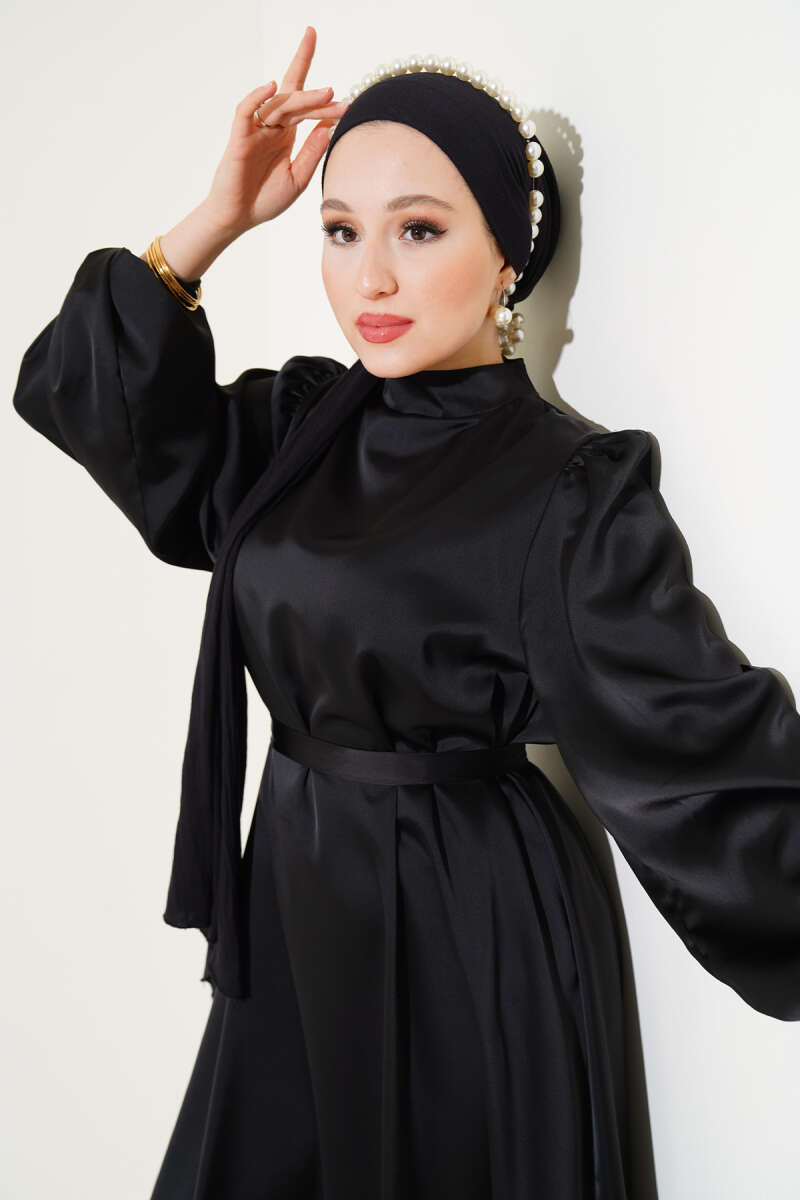 Saç Örgü Kabartmalı Triko Elbise Siyah