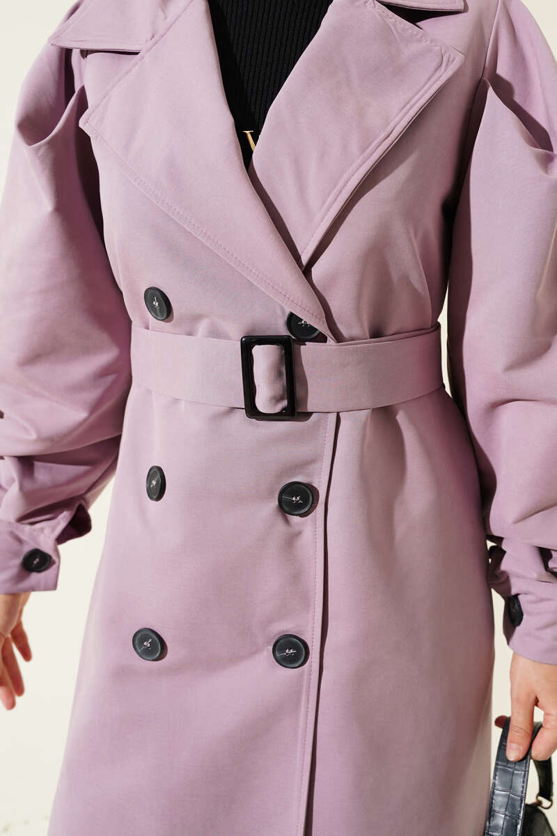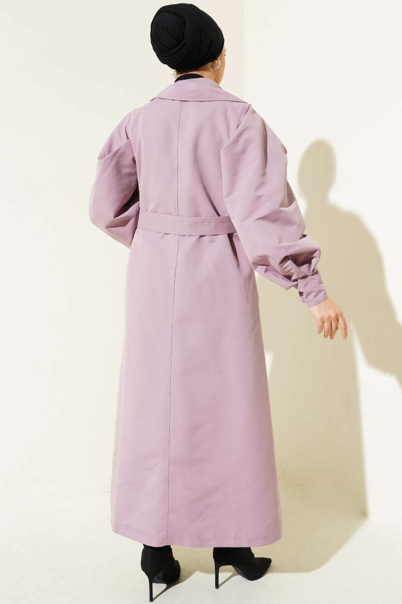 Kuşaklı Balon Kol Uzun Trençkot Lila
