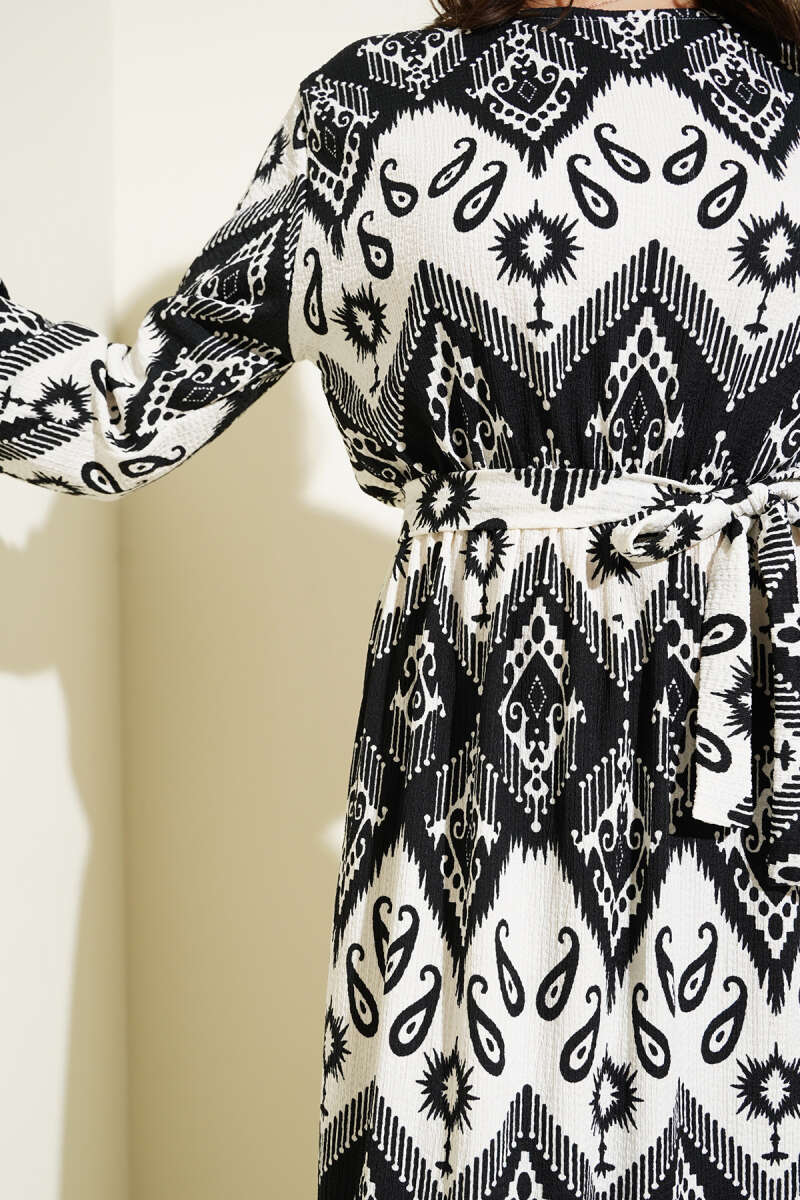 Scuba Pens Detaylı Kemerli Elbise Siyah