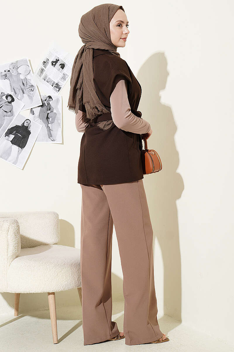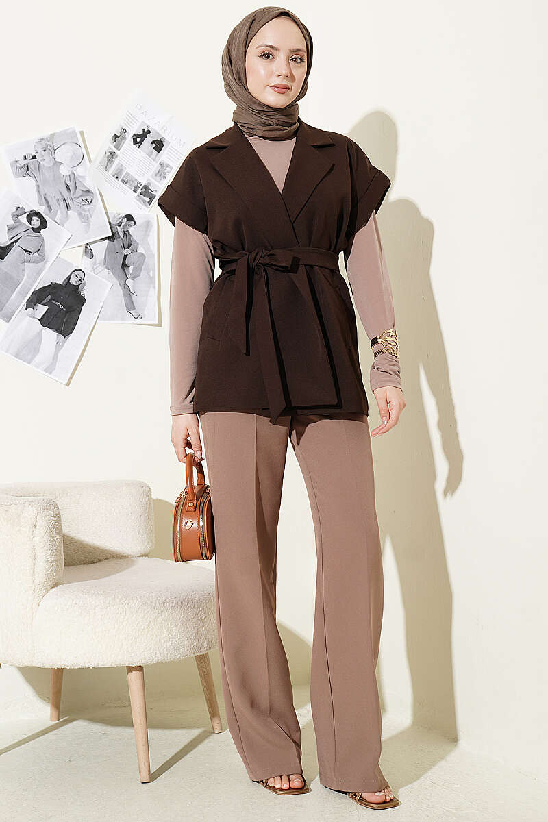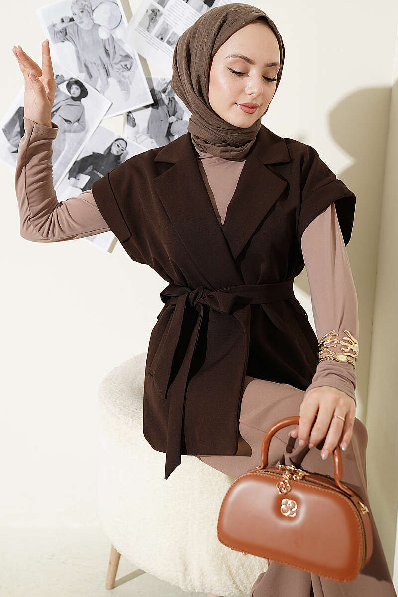 Kuşaklı Blazer Yelek Kahve