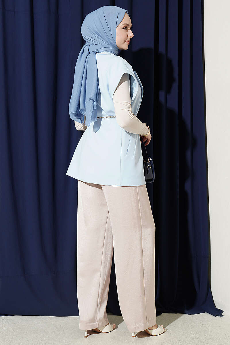 Kruvaze Yaka Kemer Detaylı Yelek Pudra