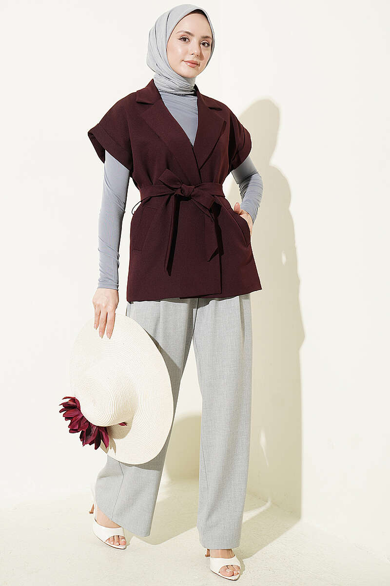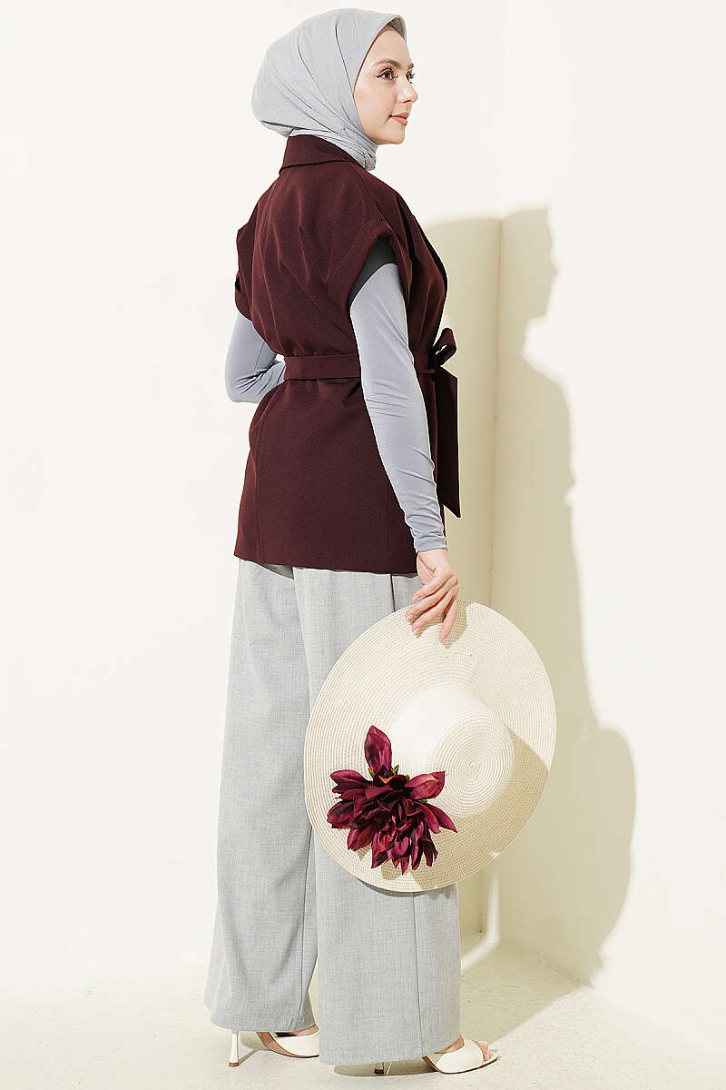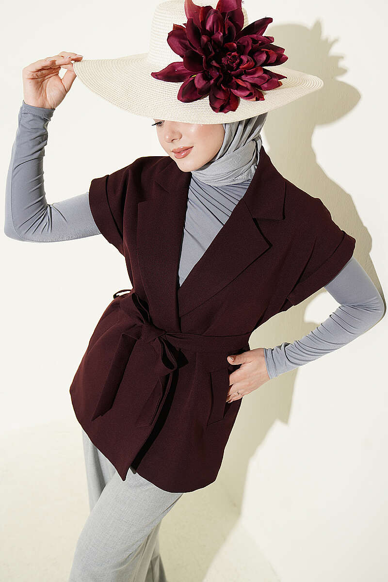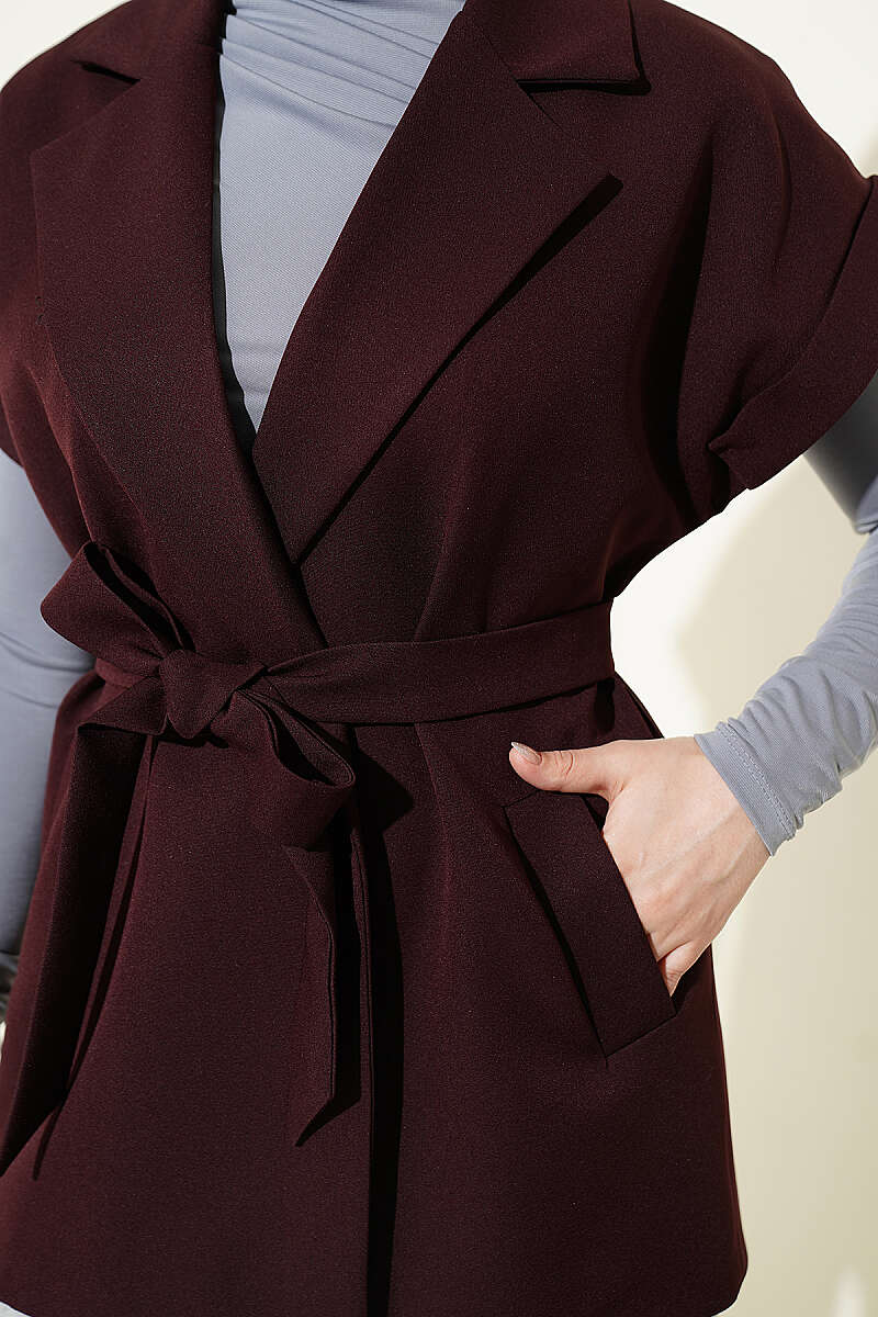 Kruvaze Yaka Kemer Detaylı Yelek Mürdüm