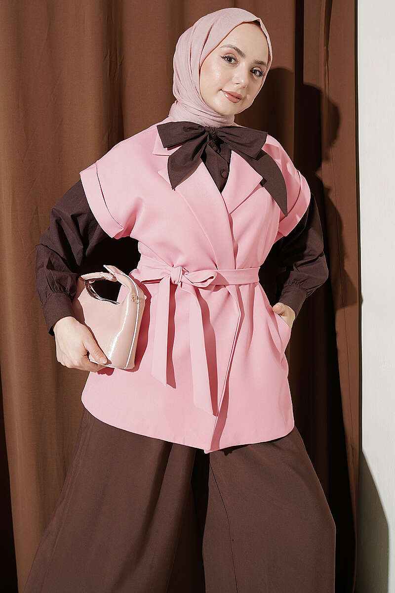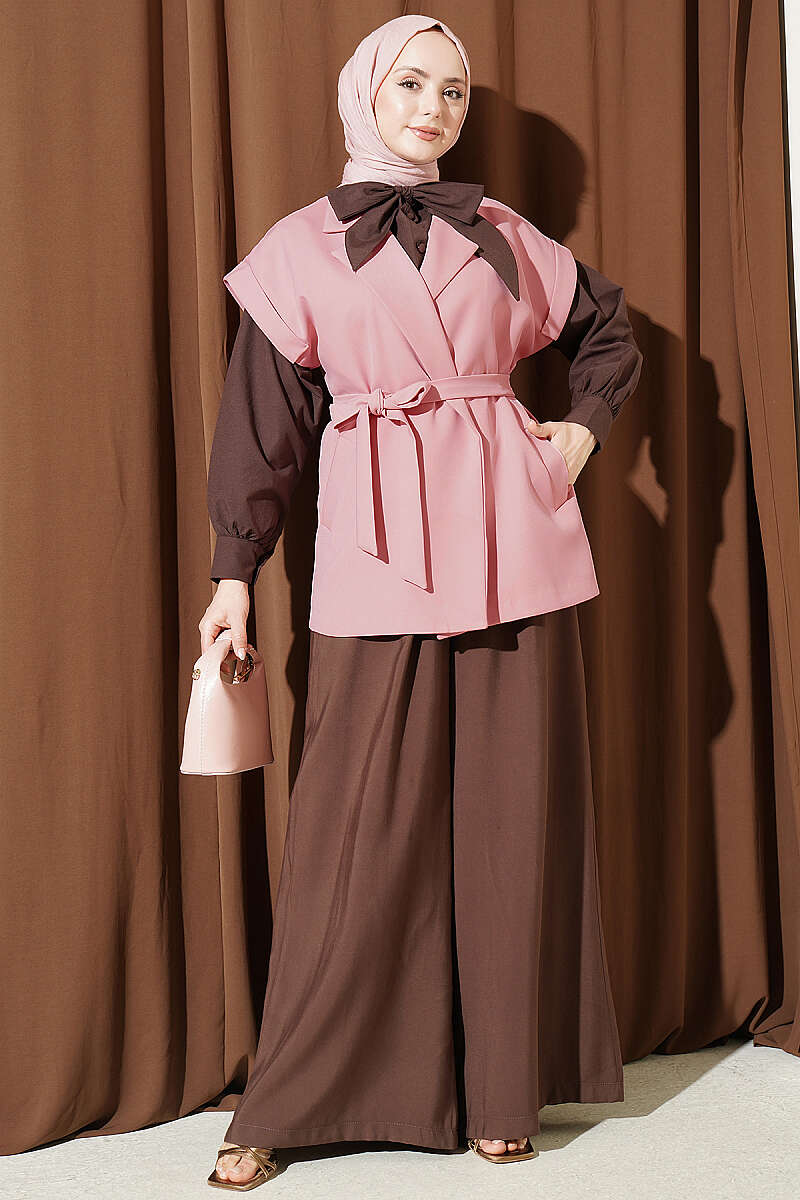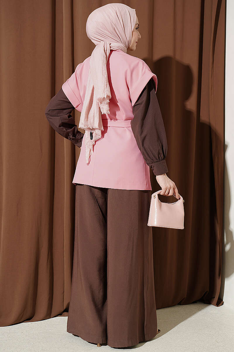 Kuşaklı Blazer Yelek Kahve
