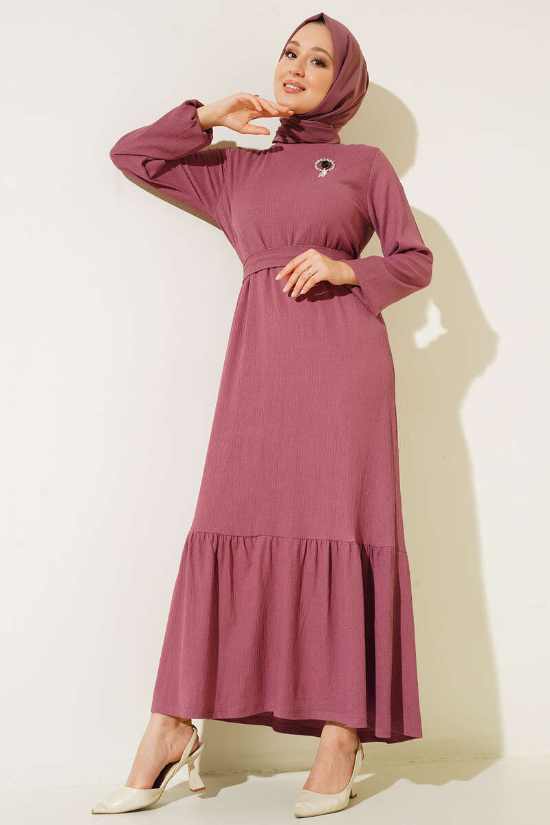 Yeni sezon elbisemiz sade ve şık tasarımıyla sizlerle. Bürümcük desenlidir. Elbisemiz kuşaklıdır. Bilekleri lastiklidir. Etek kısmı fırfırlıdır. Farklı renk seçenekleri mevcuttur.