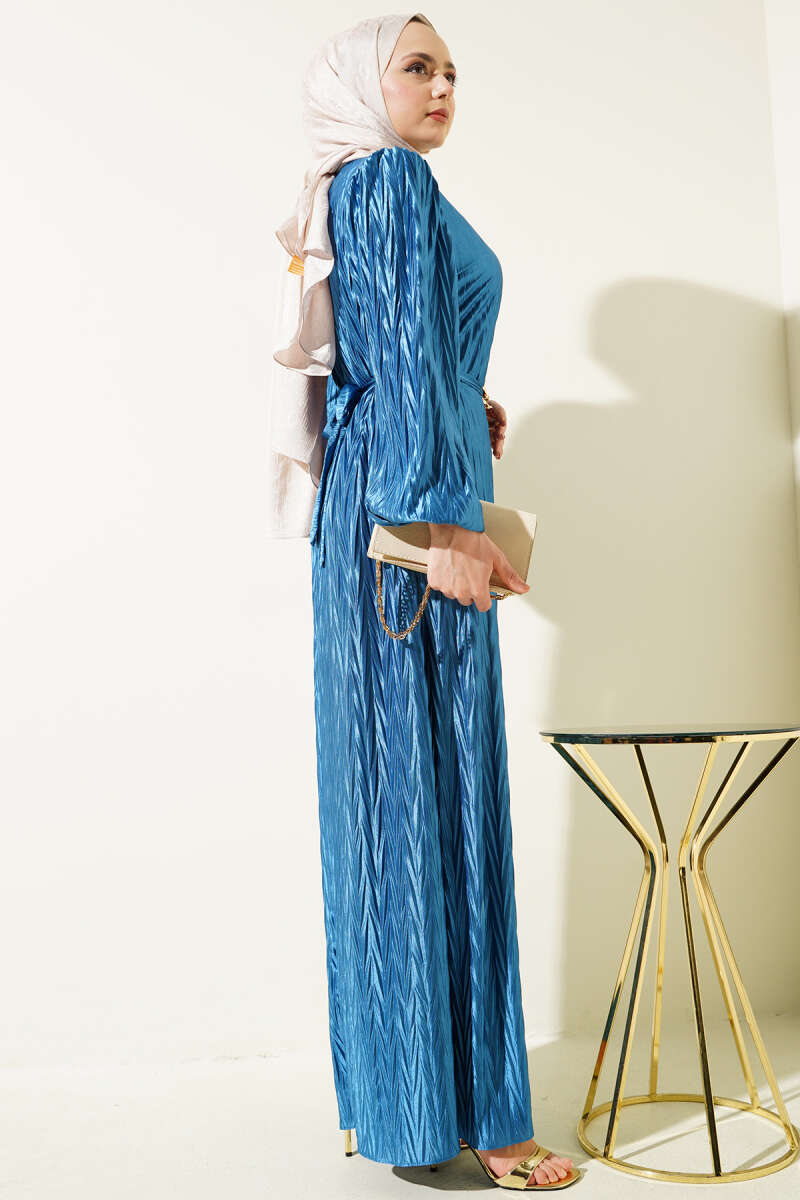 Kol Ucu Armalı İp Bağcıklı Elbise Lacivert