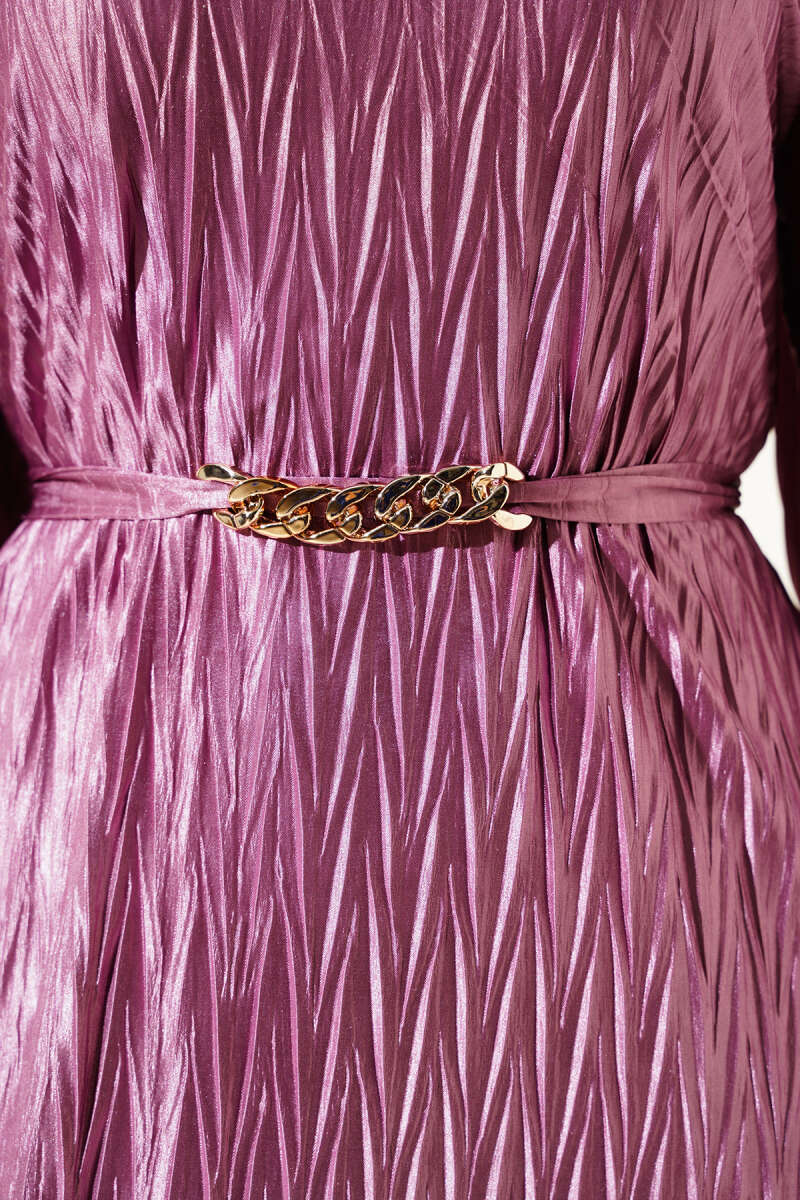 Gül Detaylı Pelerinli Abiye Elbise Mor