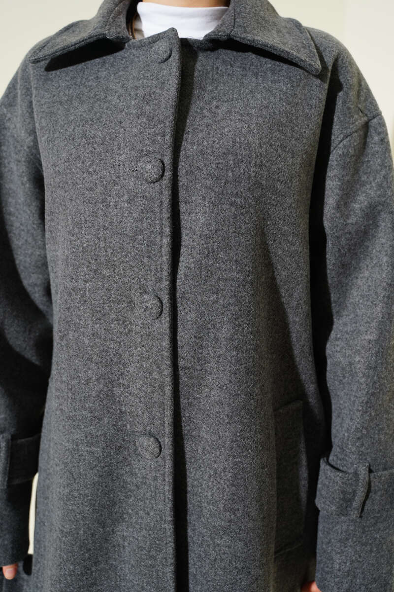 Kapüşonlu Düğmeli Kaşe Kaban Antrasit