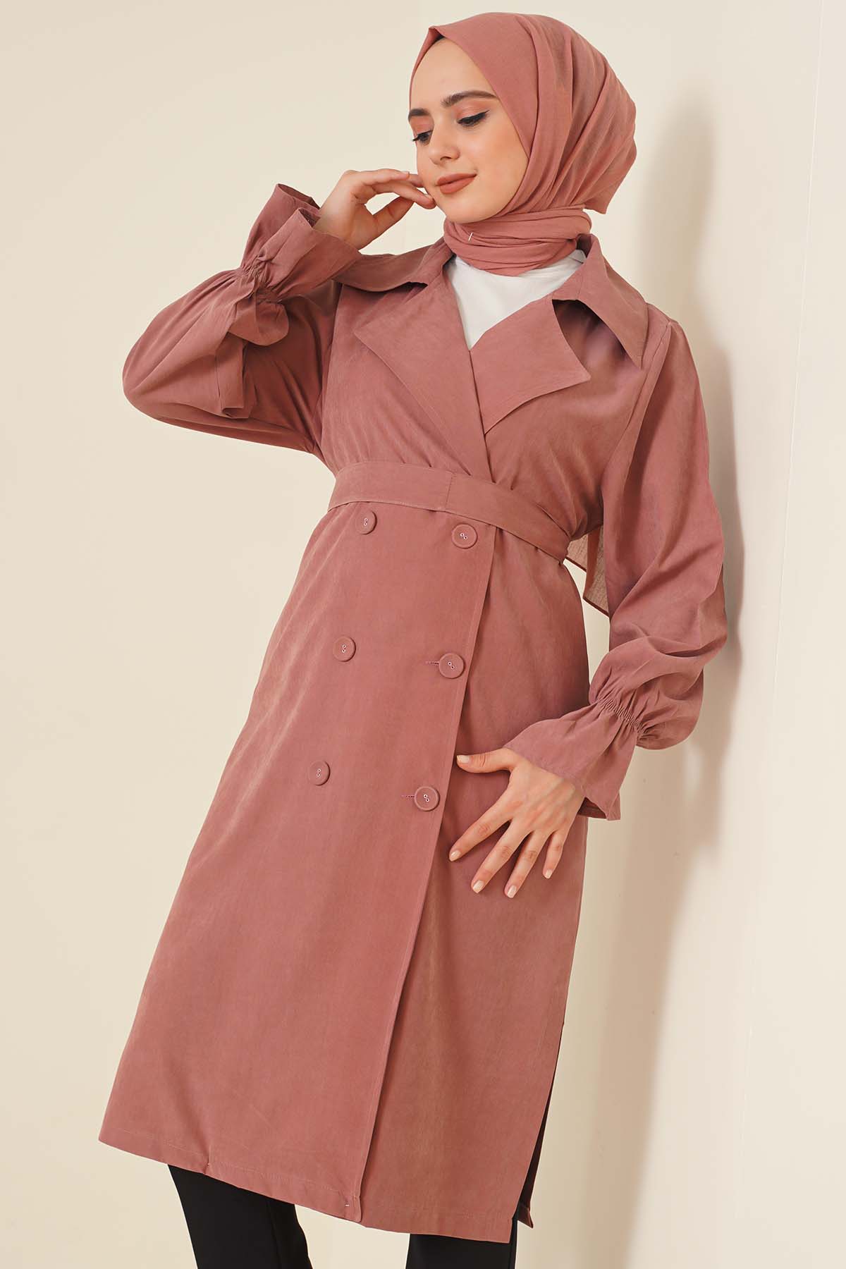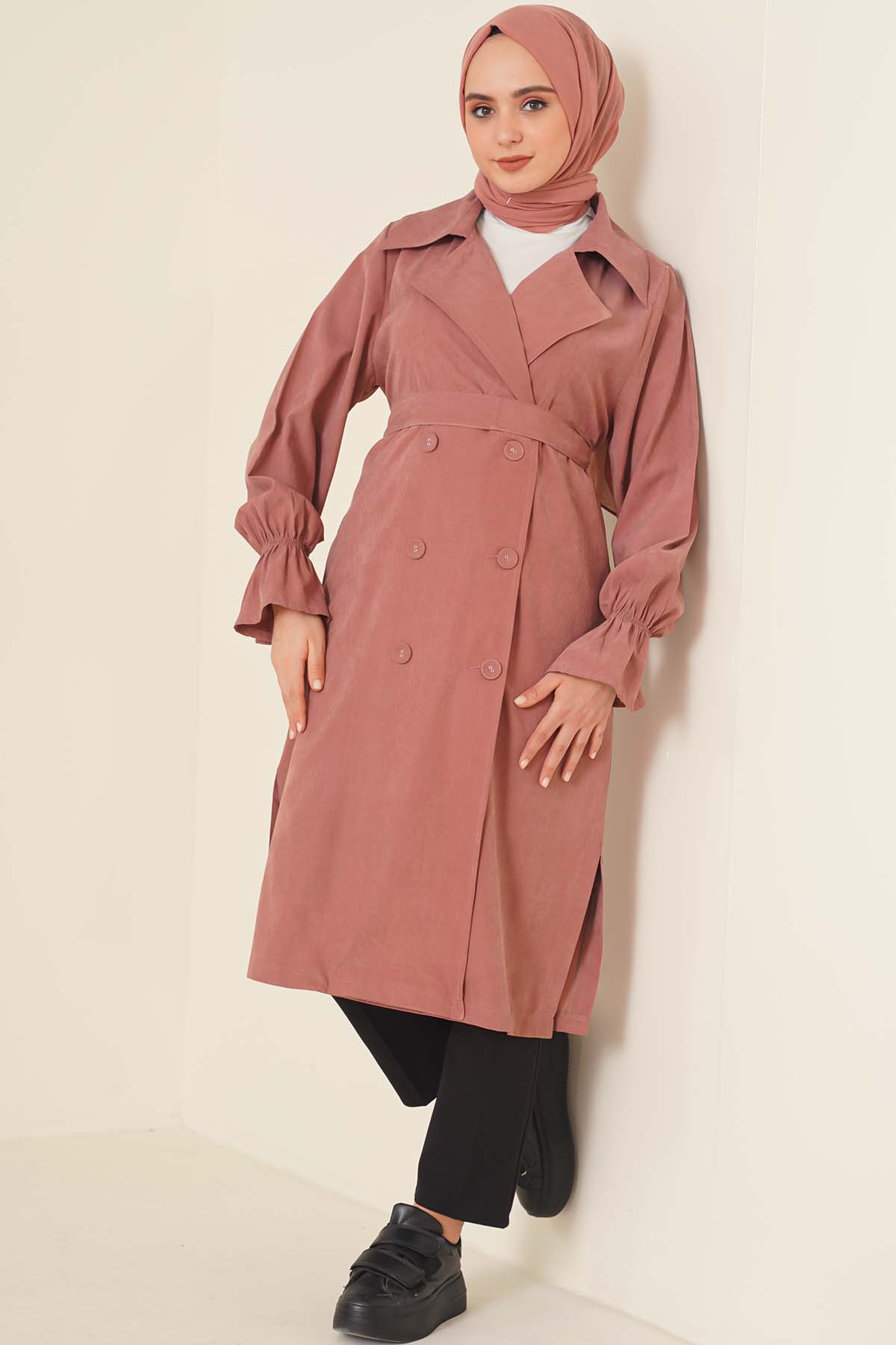 Yeni sezon sade ve şık tasarıma sahip trençkotumuz şimdi sizlerle birlikte. Bilekleri lastiklidir. Belinde kuşak bulunmaktadır. Yanları yırtmaçlıdır. İki gizli cebi vardır. Önü düğmelidir. Bu serin havalarda her kıyafetinizin üstüne rahatlıkla giyebilirsiniz. Farklı renk seçenekleri mevcuttur.