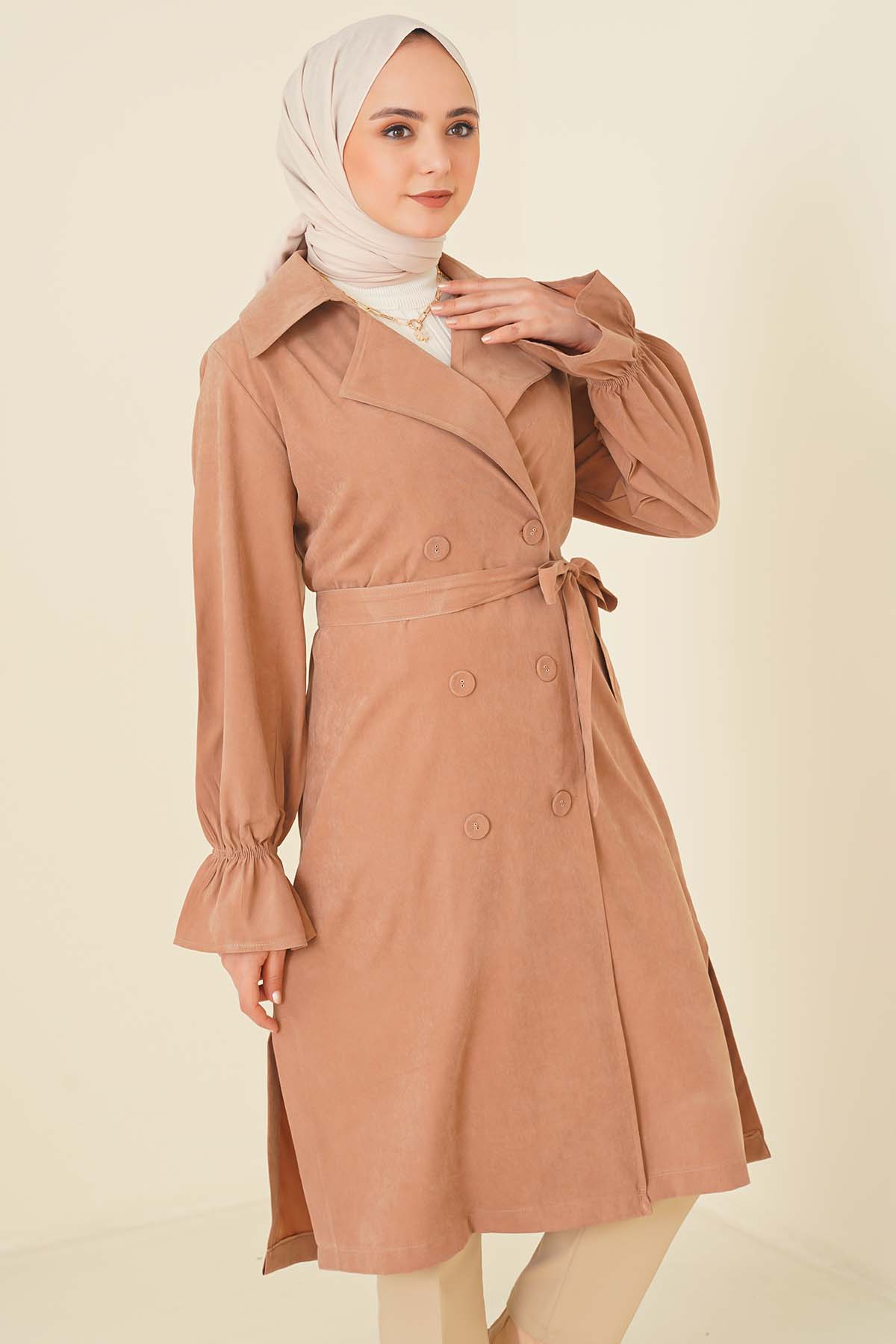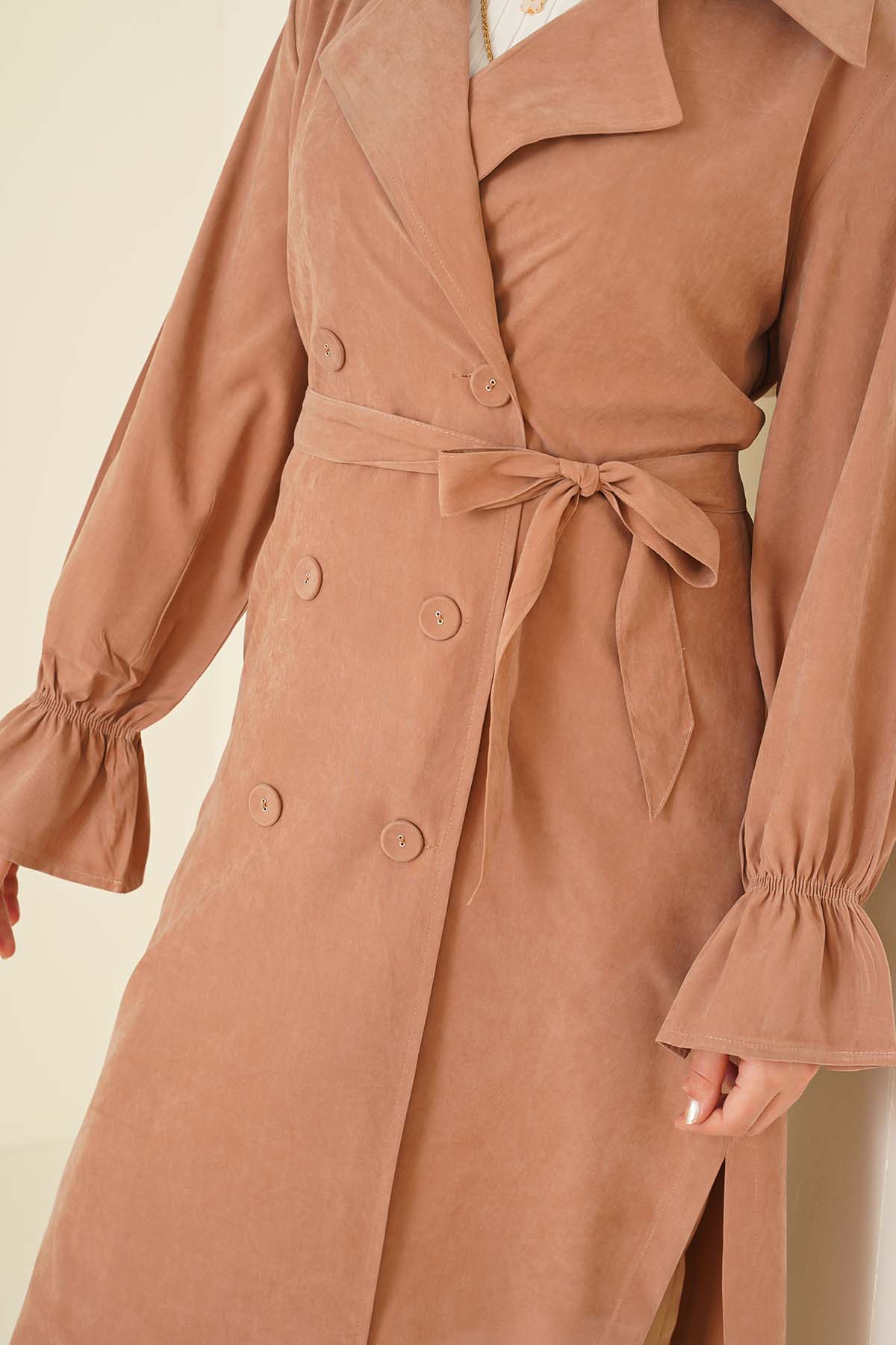 Kuşaklı Düğmeli Trençkot Latte