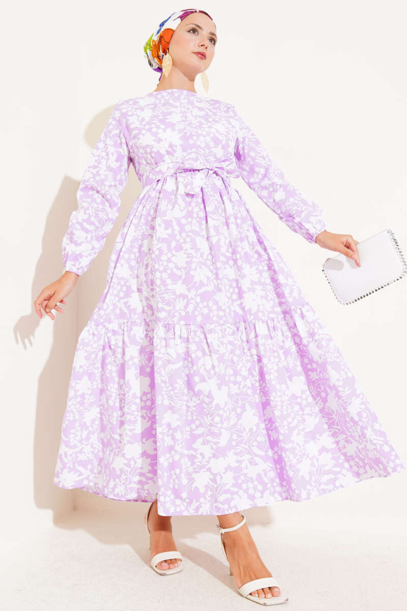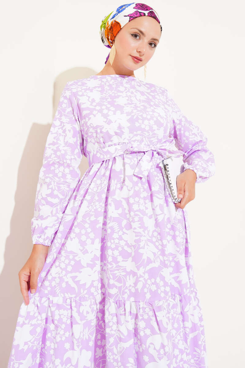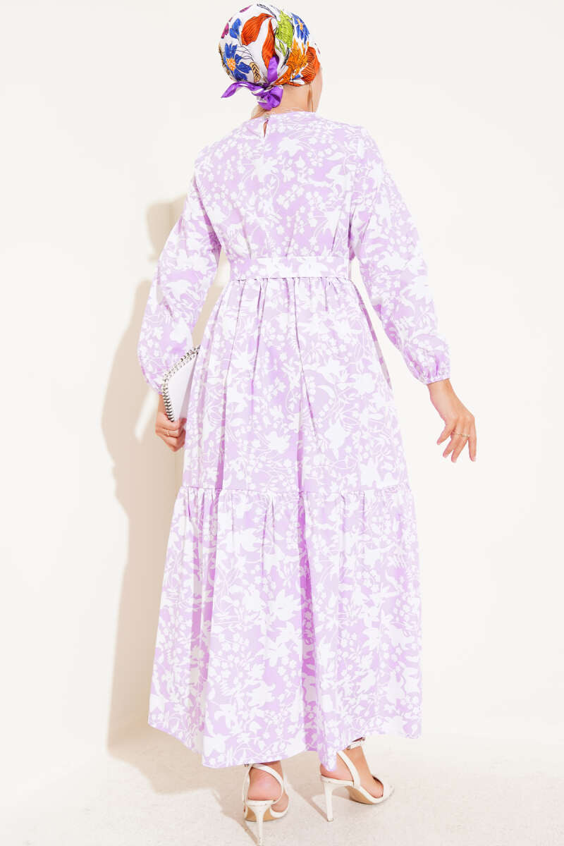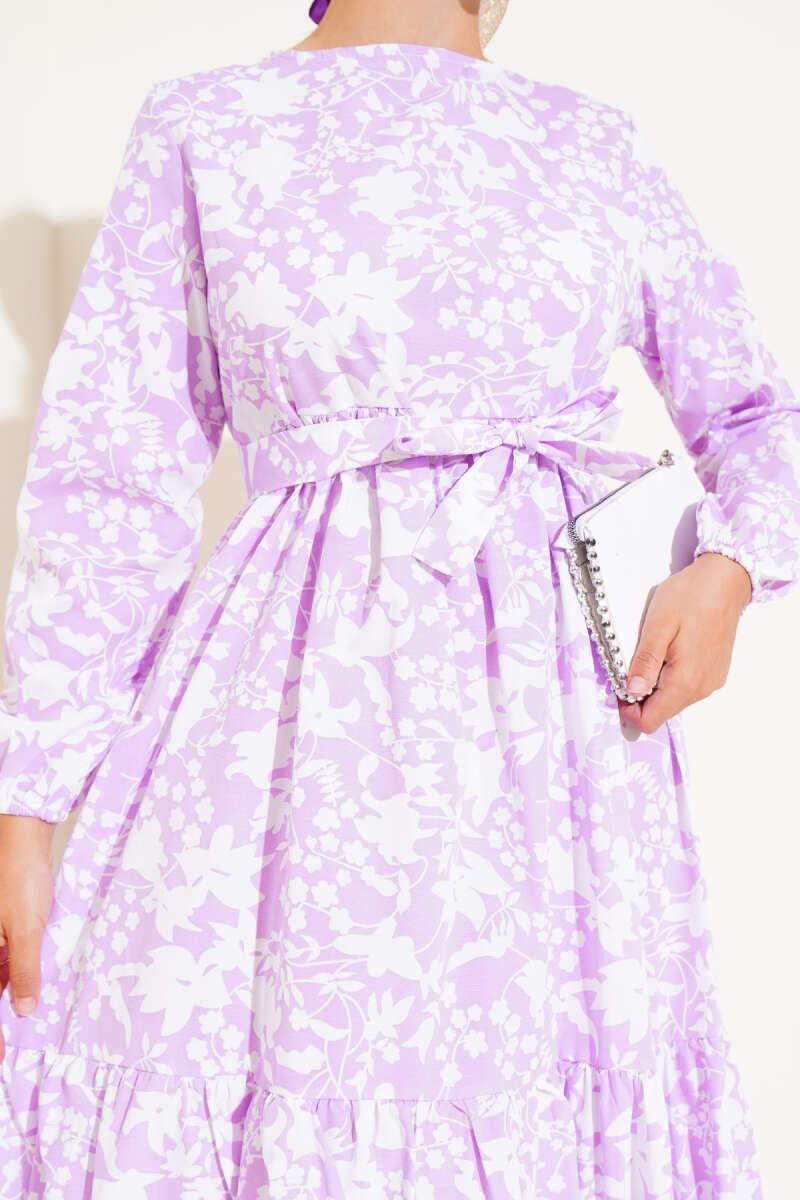 Kuşaklı Etnik Desen Elbise Kırmızı