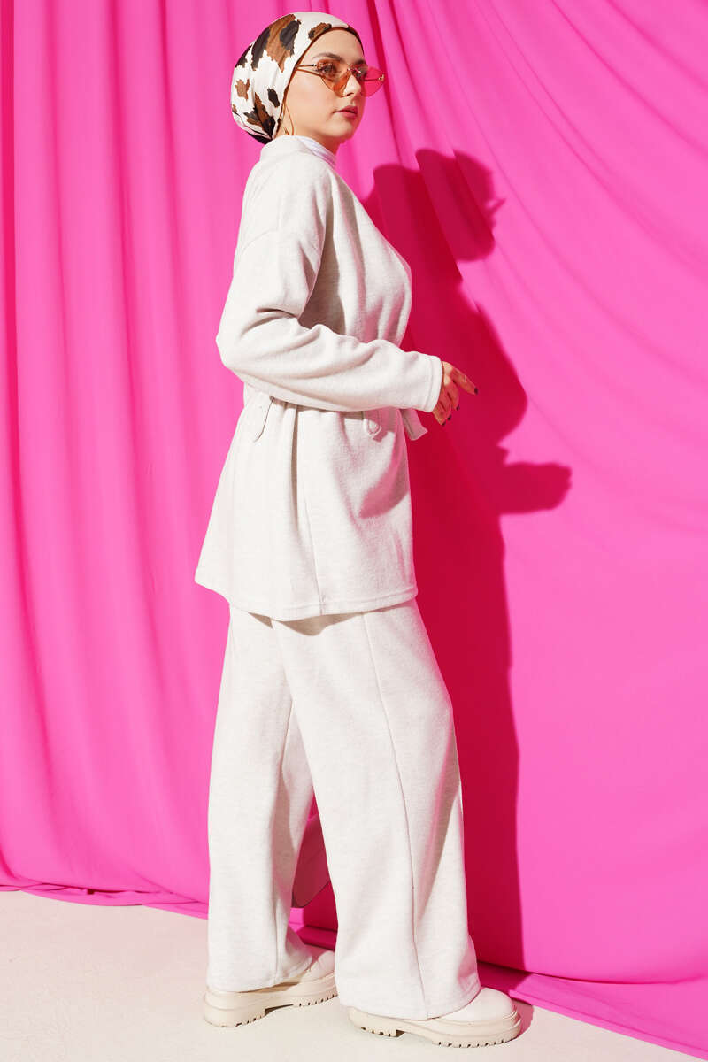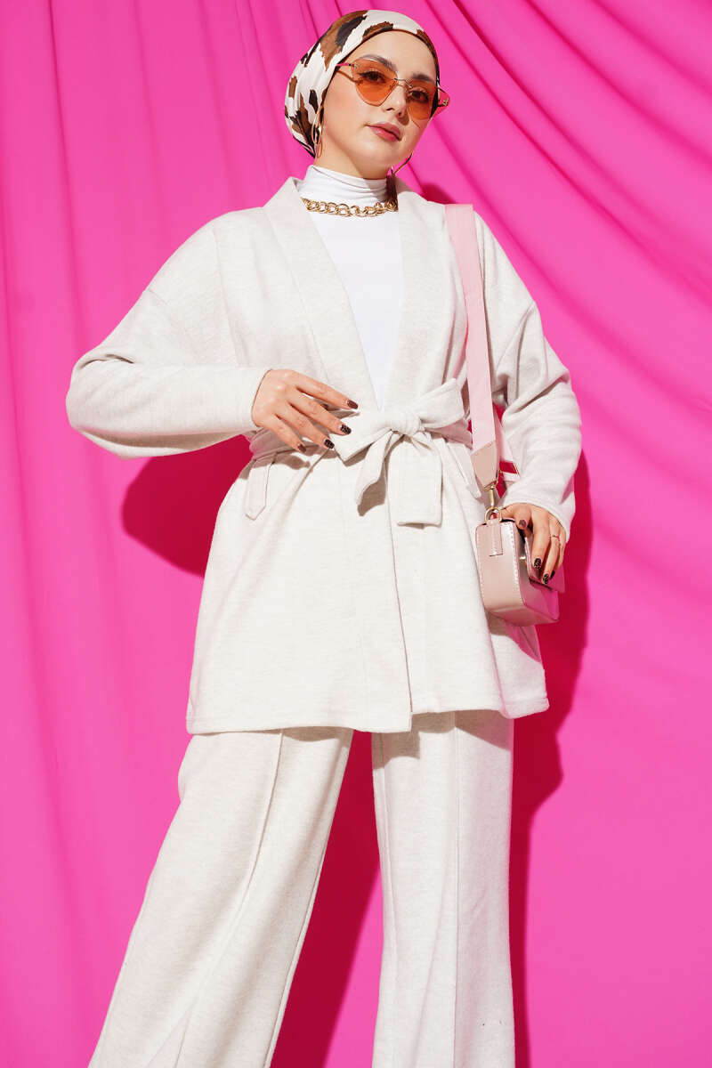 Kapüşonlu Cepli Loyşa İkili Takım Ekru