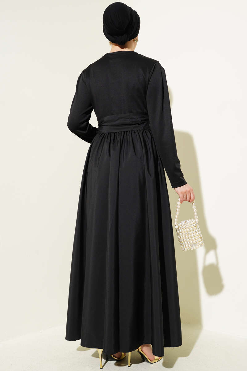 Omuz Pelerinli Taş Detaylı Abiye Elbise Siyah