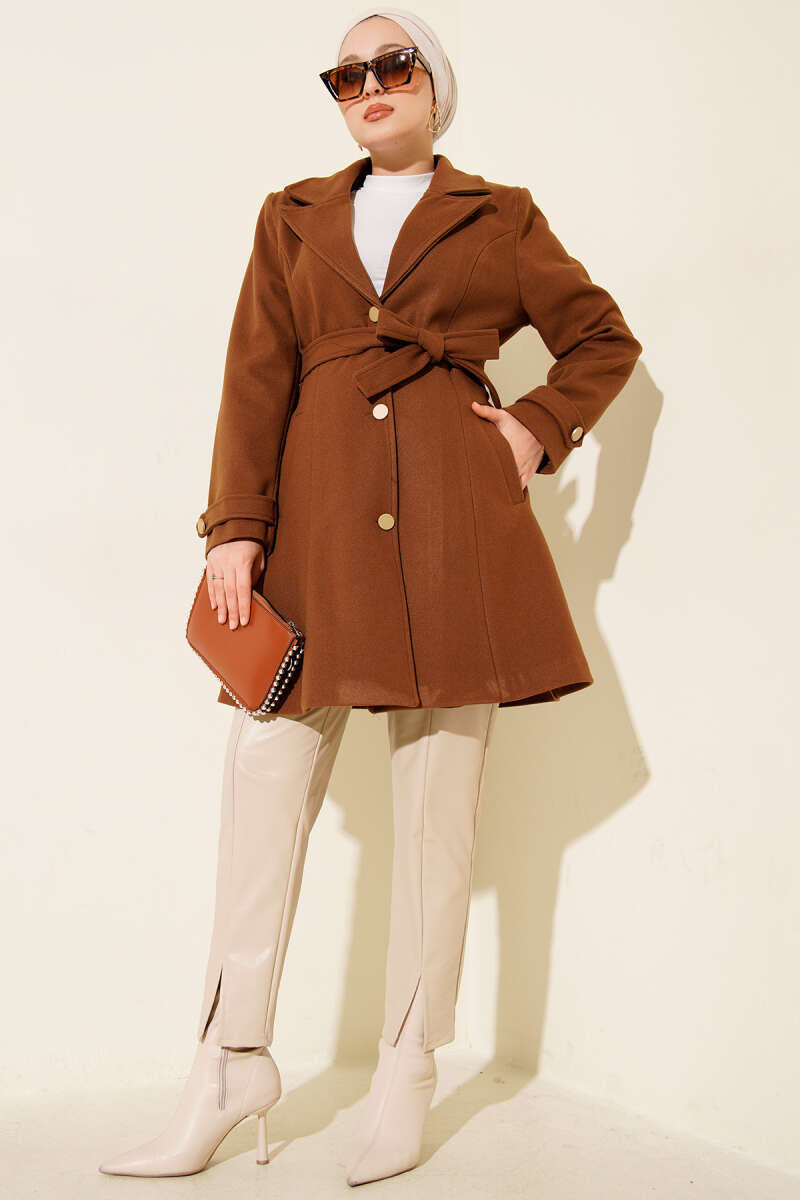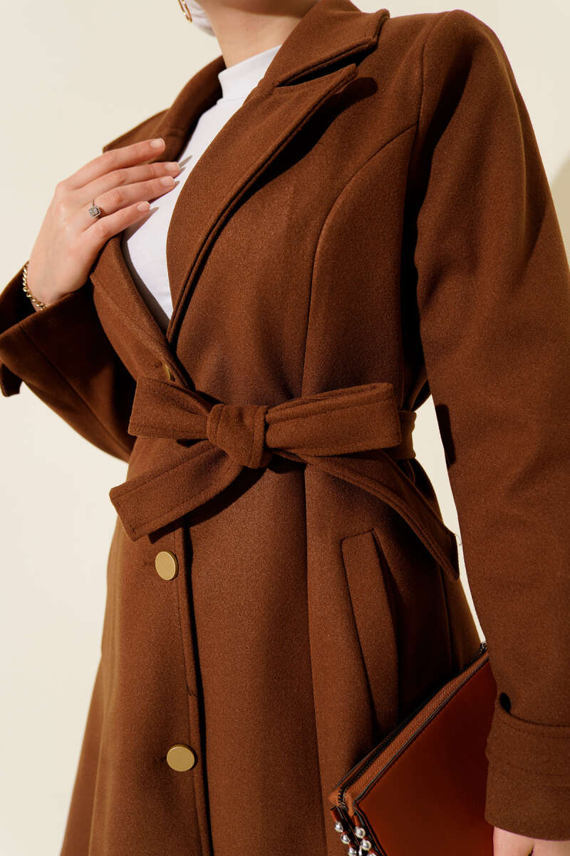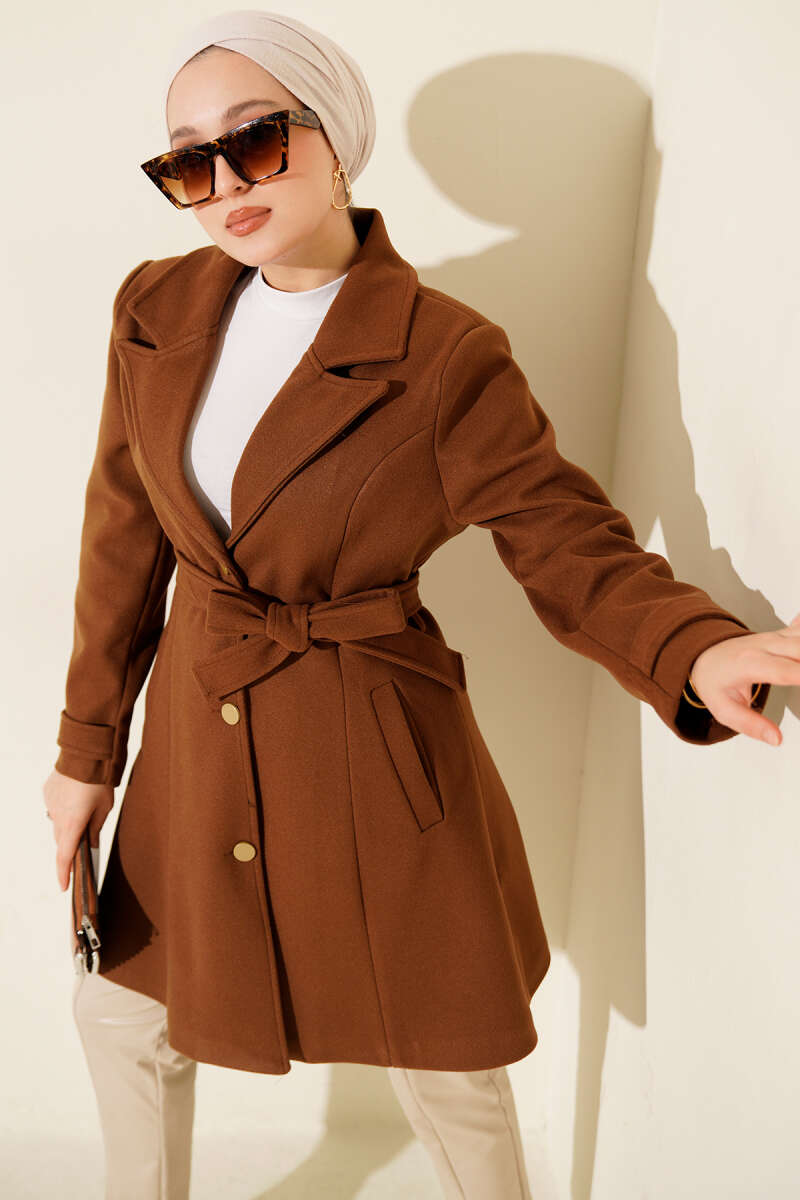 Kemerli Uzun Kaşe Kaban Kestane