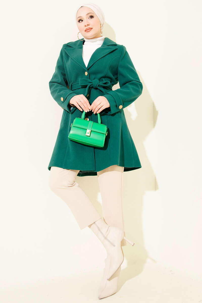 Balon Kol Kısa Kaşe Kaban Zümrüt
