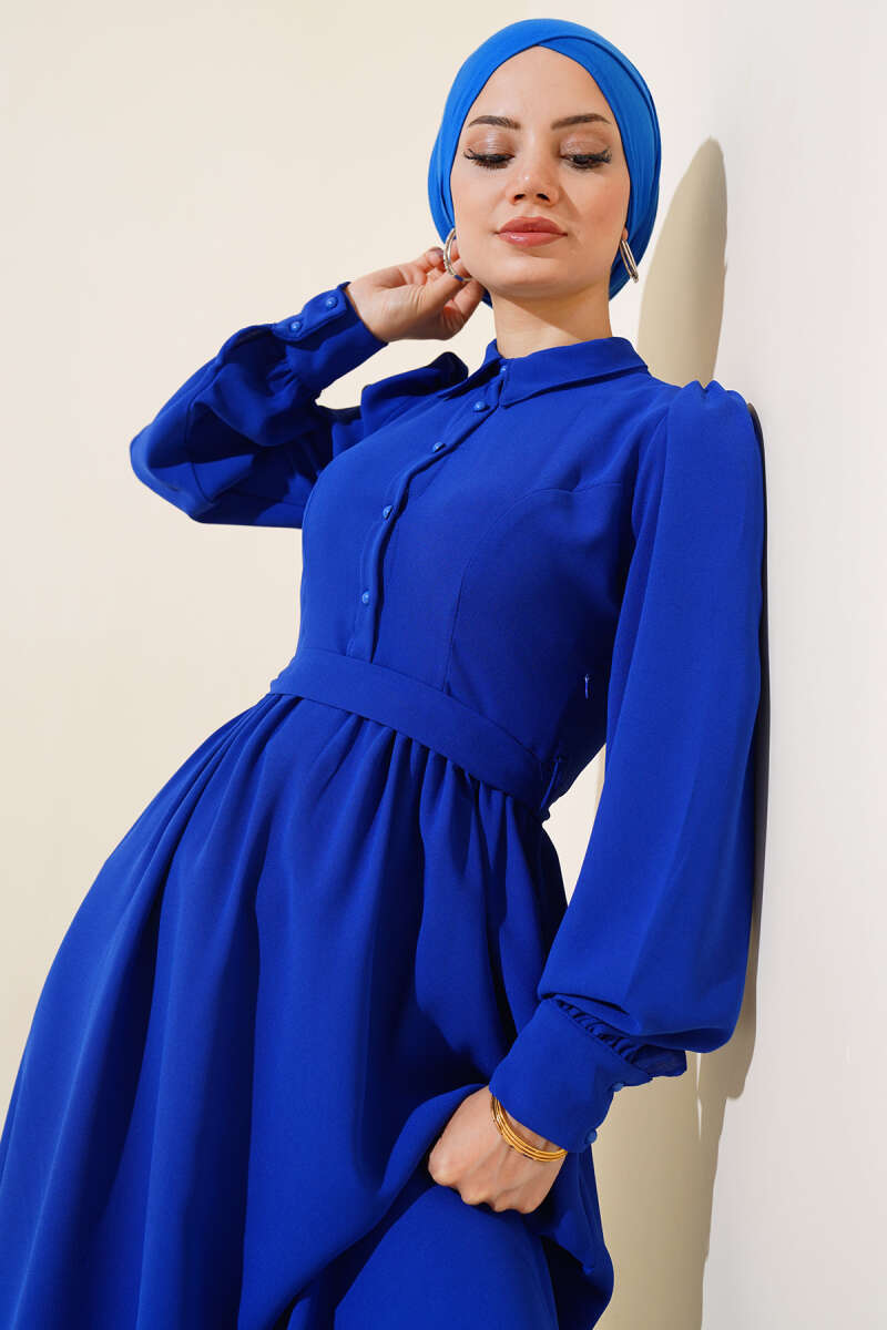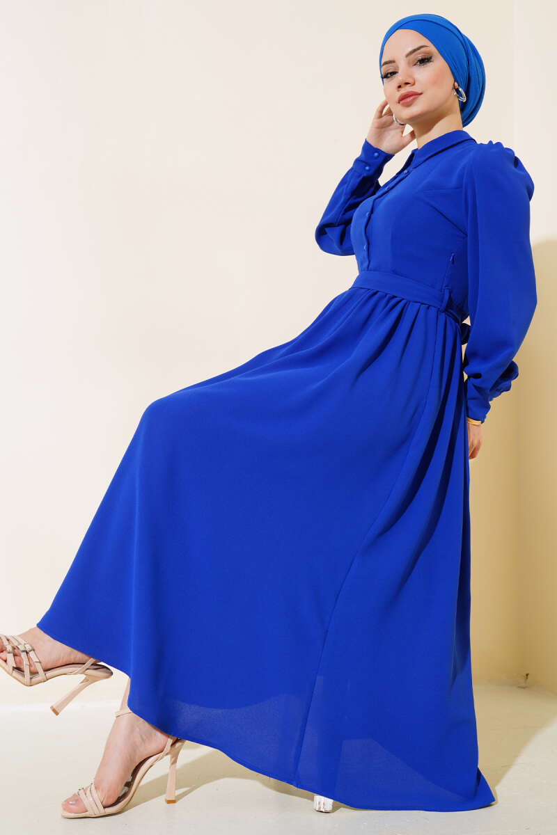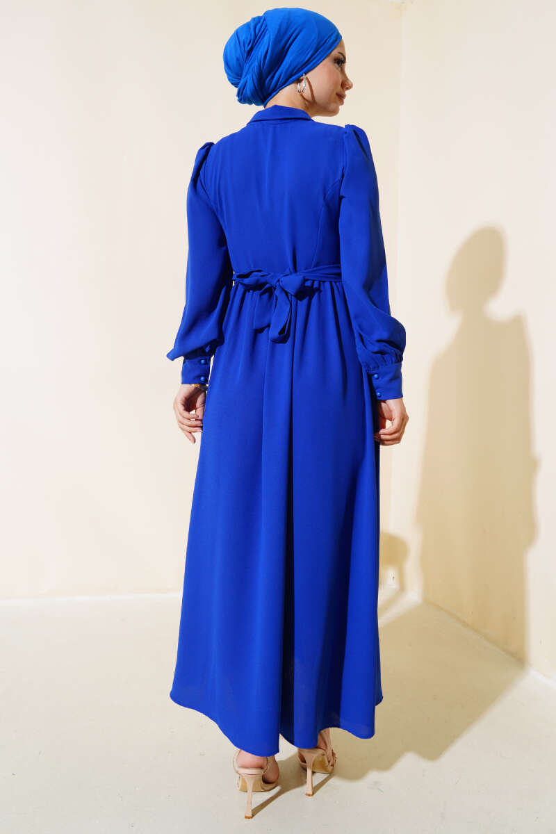 Bilek Bağlamalı Kuşaklı Abiye Elbise Lacivert
