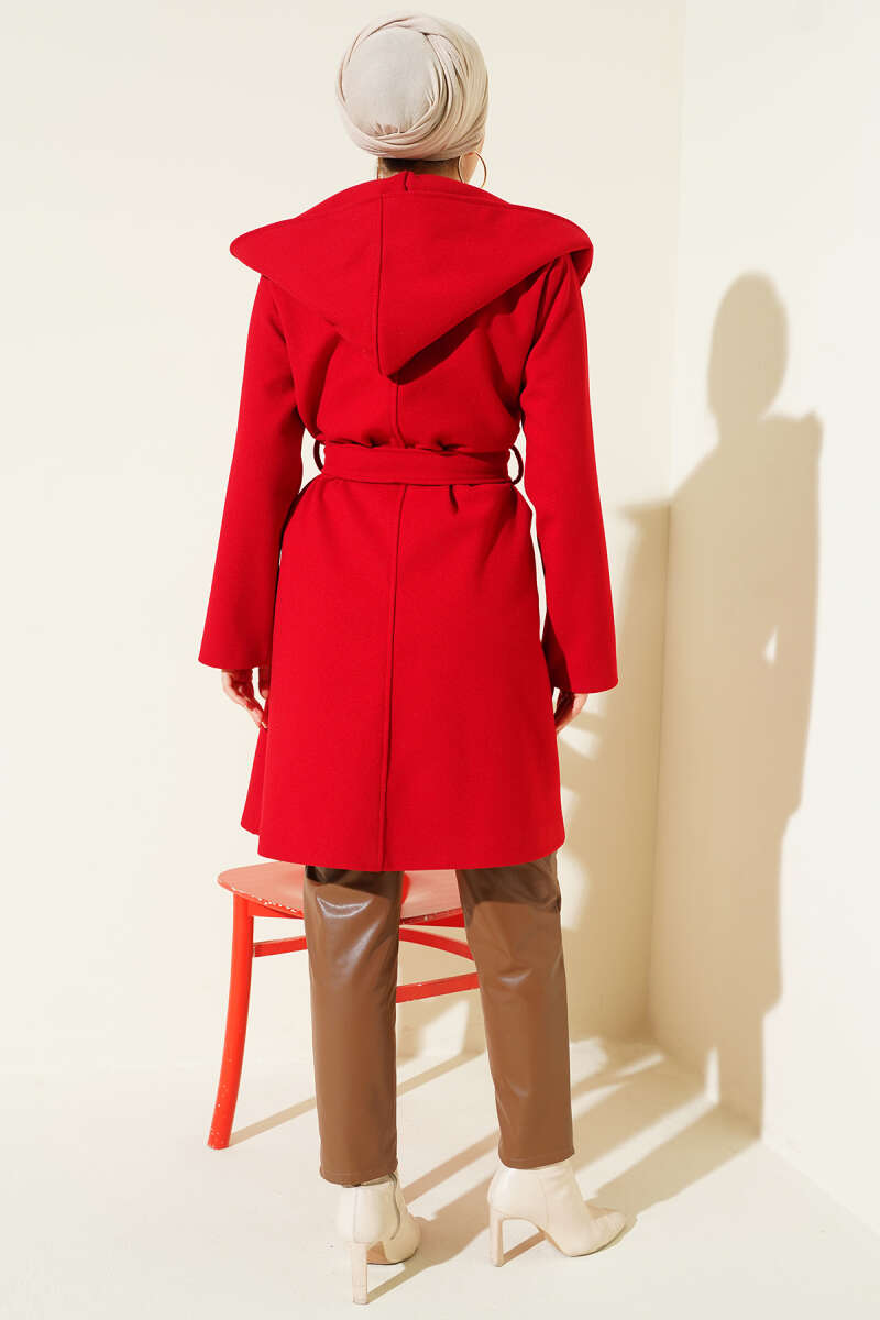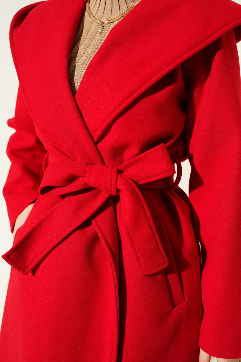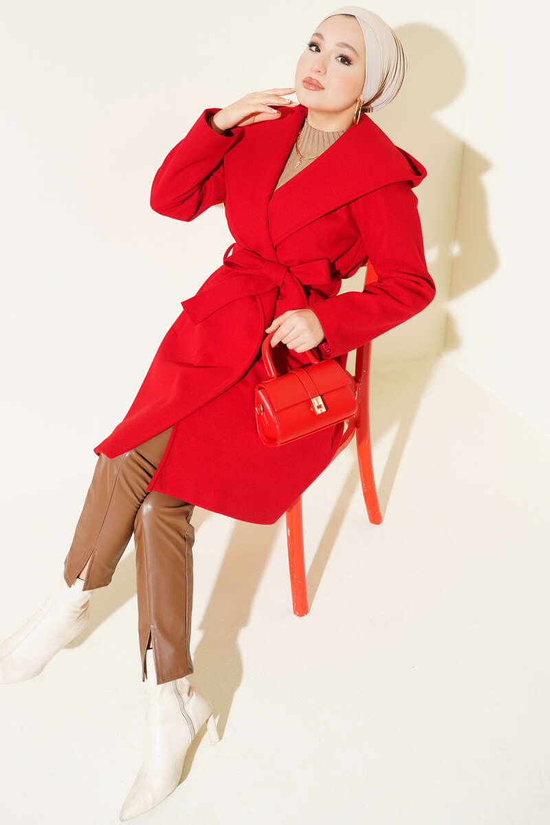 Kruvaze Yaka Uzun Kaşe Kaban Bordo