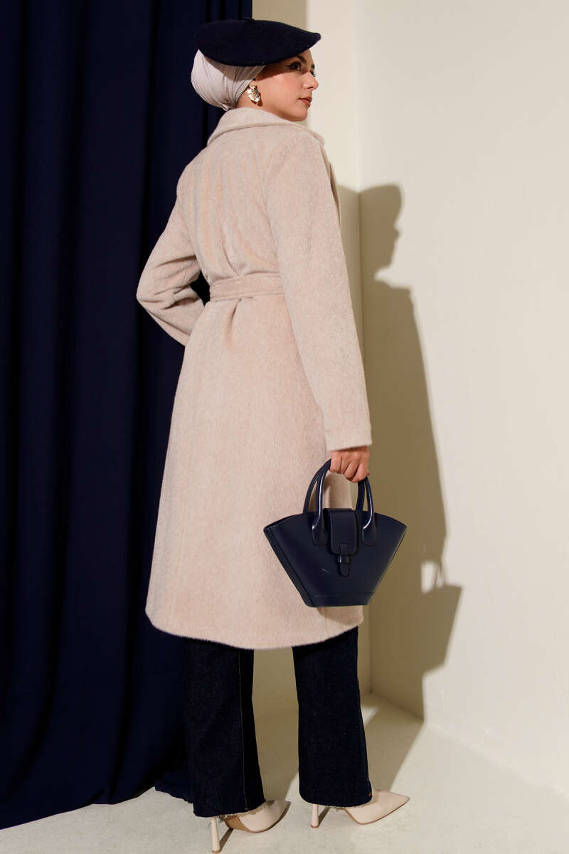 Kürk Yakalı Düğmeli Kaşe Kaban Haki
