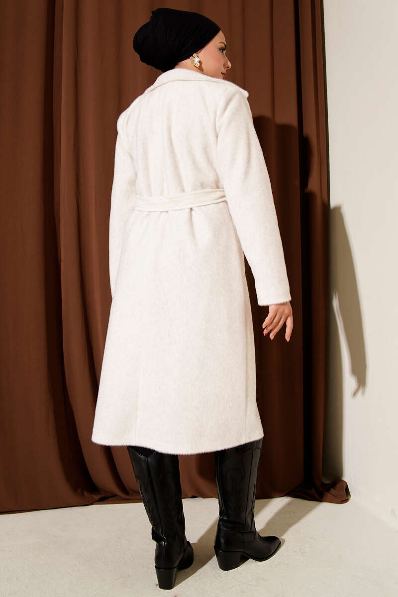 Kürk Yakalı Düğmeli Kaşe Kaban Haki