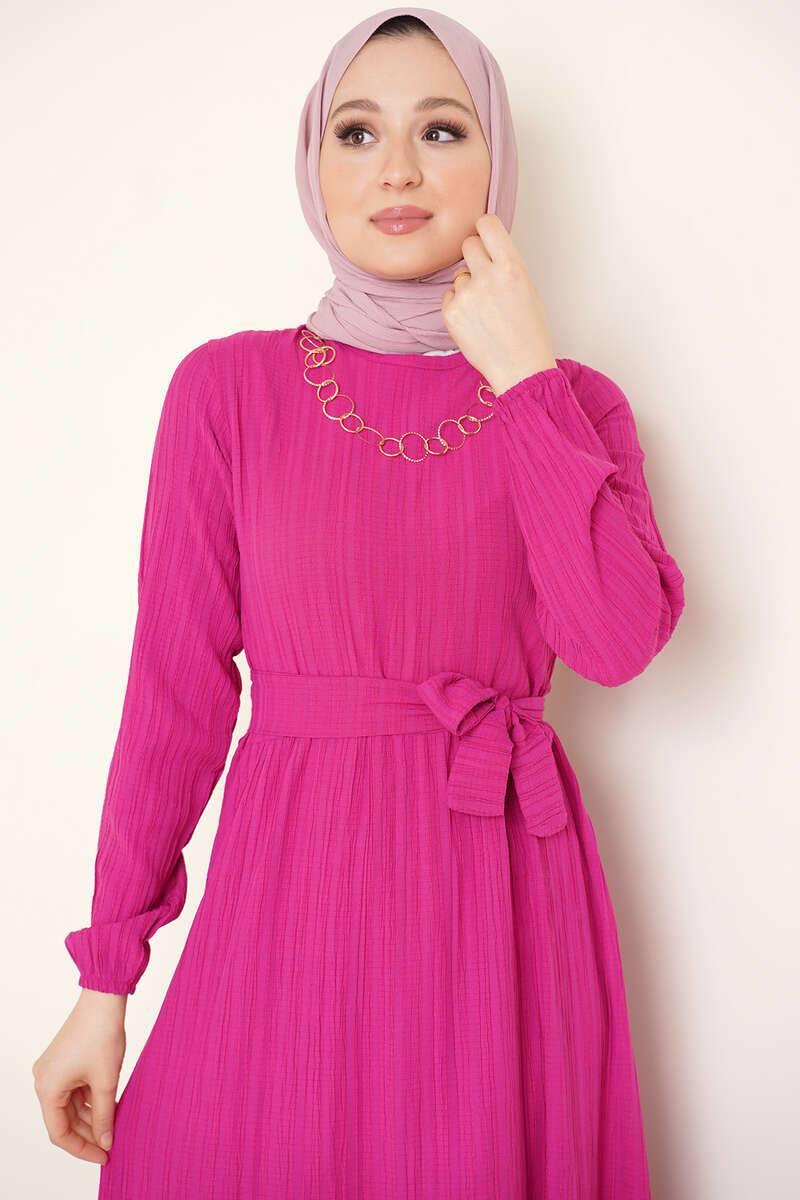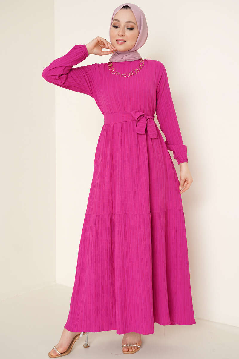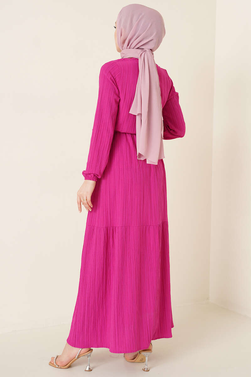 Yeni sezon model elbisemiz dikkat çeken görünümüyle sizlerle buluştu. Elbisemizin bilekleri lastiklidir. Kat kat modellidir. Kuşağı bulunmaktadır. Ensesinde kuş gözü ve düğme vardır. Her ortamda rahatlıkla giyebilirsiniz. Farklı renk seçenekleri mevcuttur.