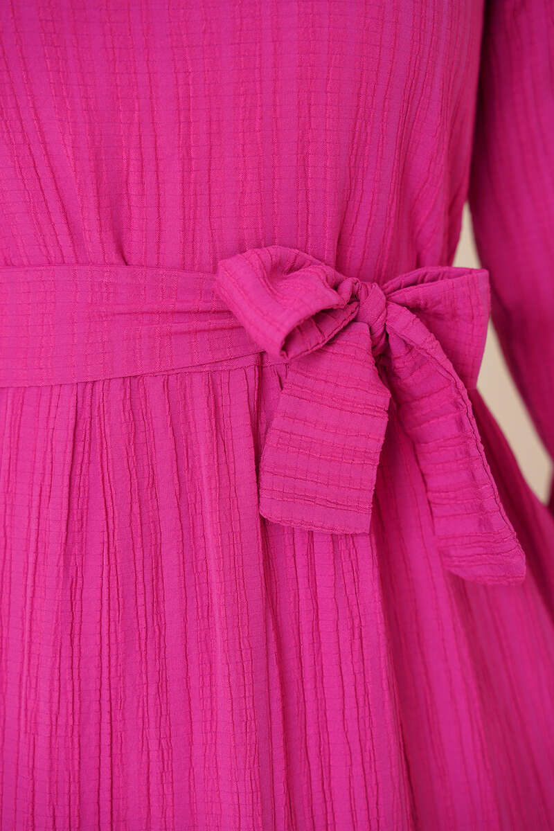 Bel Pensli İp Kuşaklı Elbise Bordo