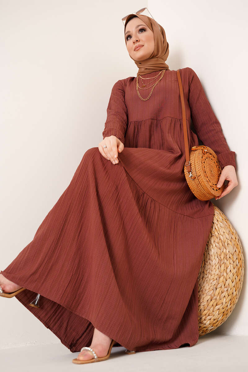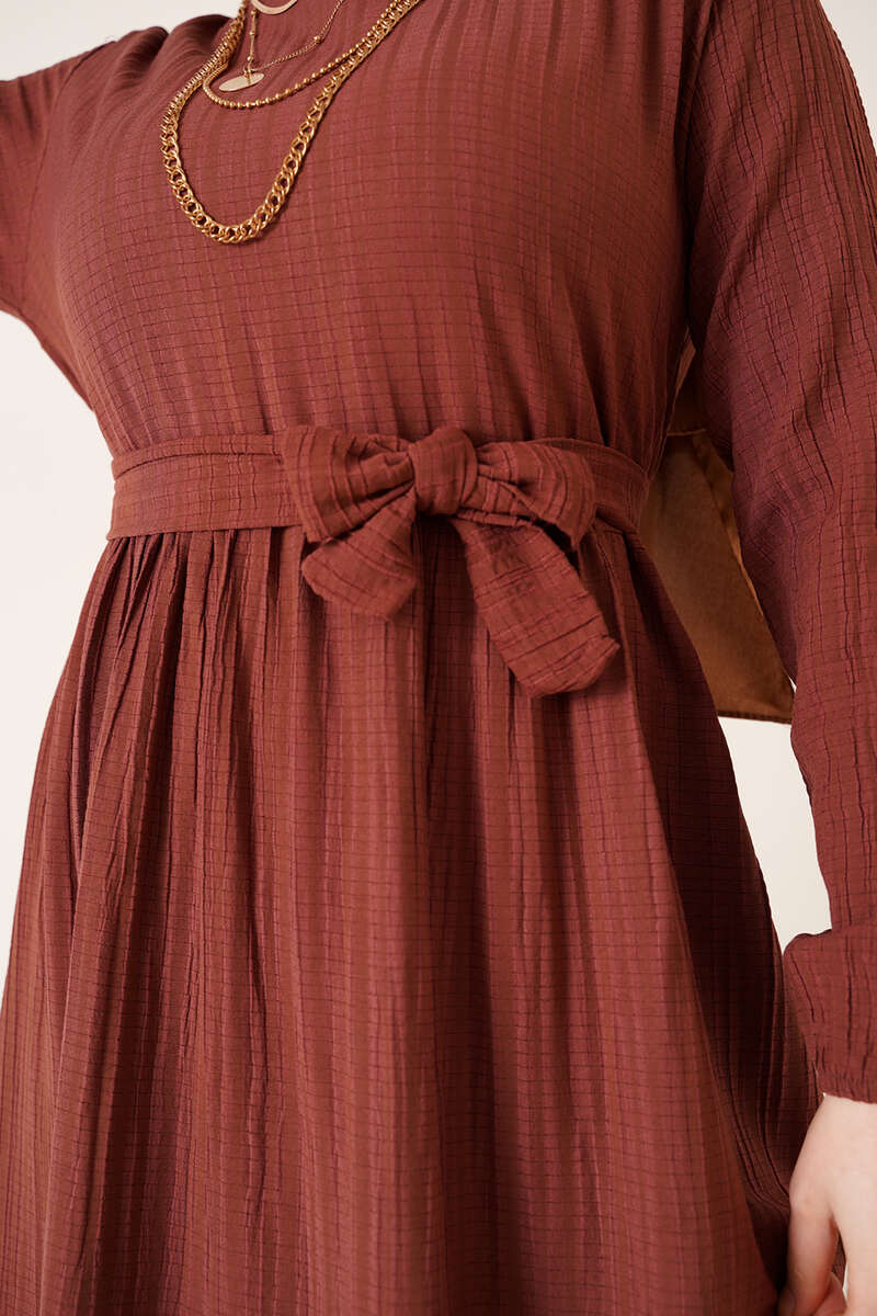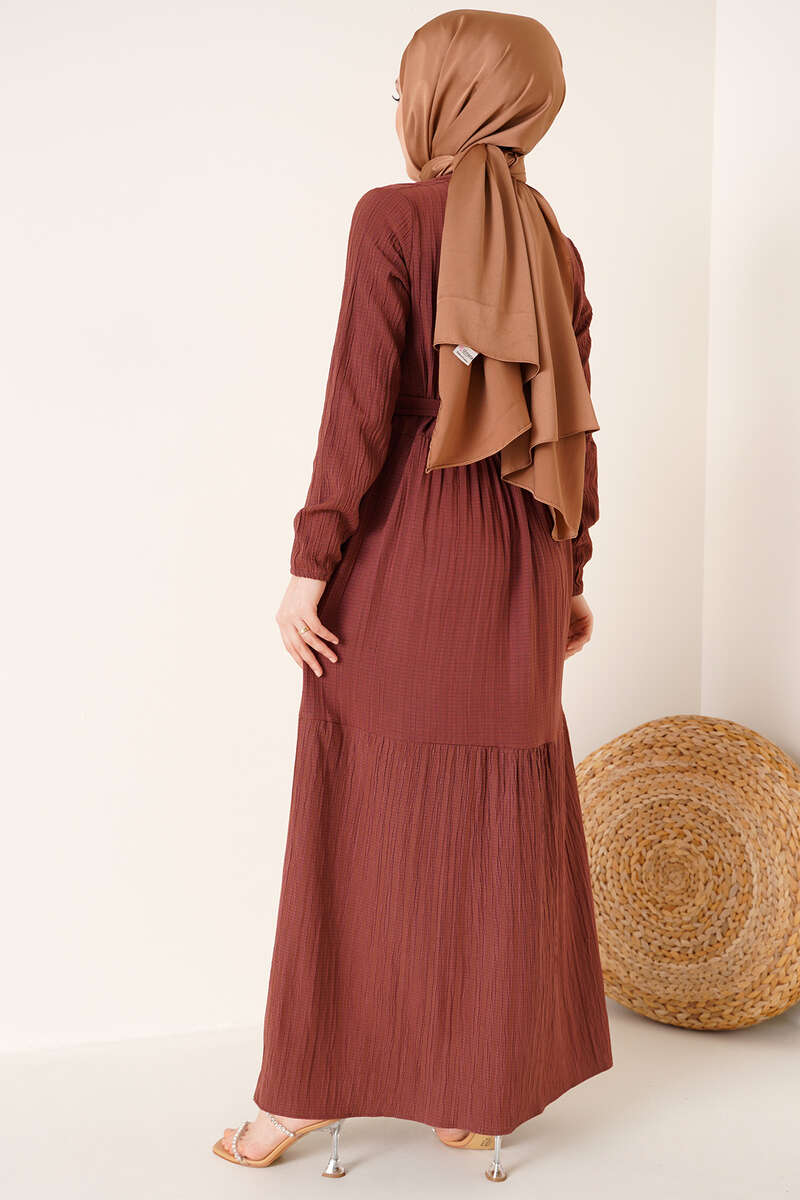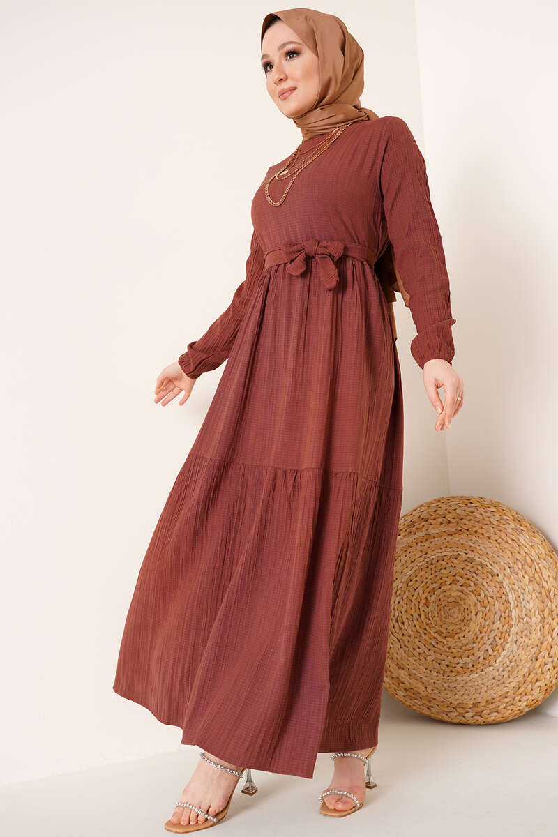 Kuşaklı Kat Kat Elbise Kahve