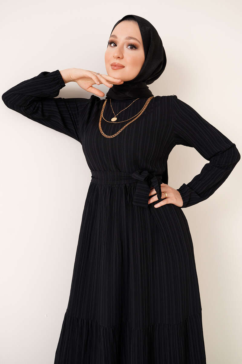 Yeni sezon model elbisemiz dikkat çeken görünümüyle sizlerle buluştu. Elbisemizin bilekleri lastiklidir. Kat kat modellidir. Kuşağı bulunmaktadır. Ensesinde kuş gözü ve düğme vardır. Her ortamda rahatlıkla giyebilirsiniz. Farklı renk seçenekleri mevcuttur.