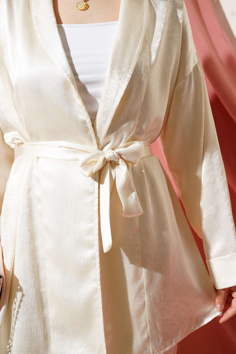 Önü Bağcık Detaylı Etekli İkili Takım Bej