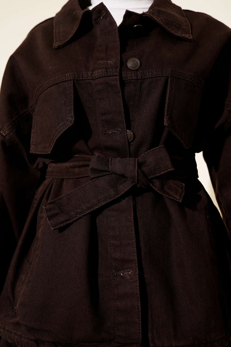 Cepli Kemerli Uzun Hırka Siyah