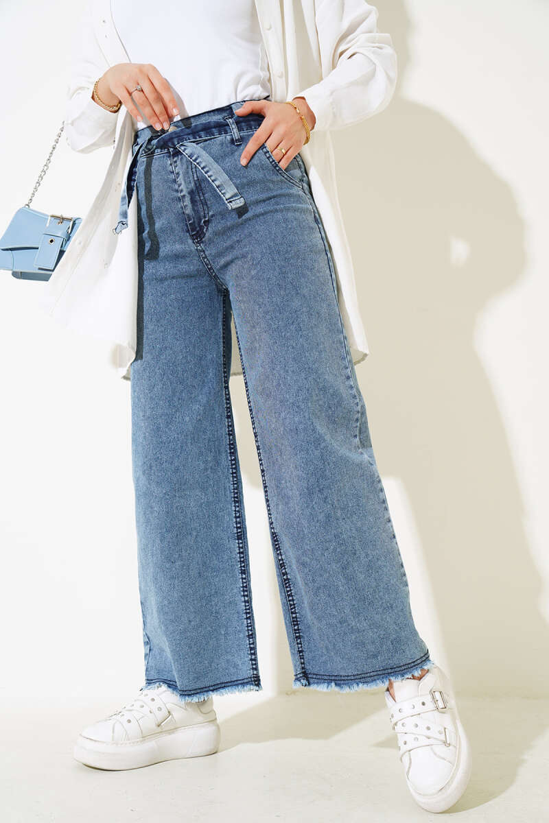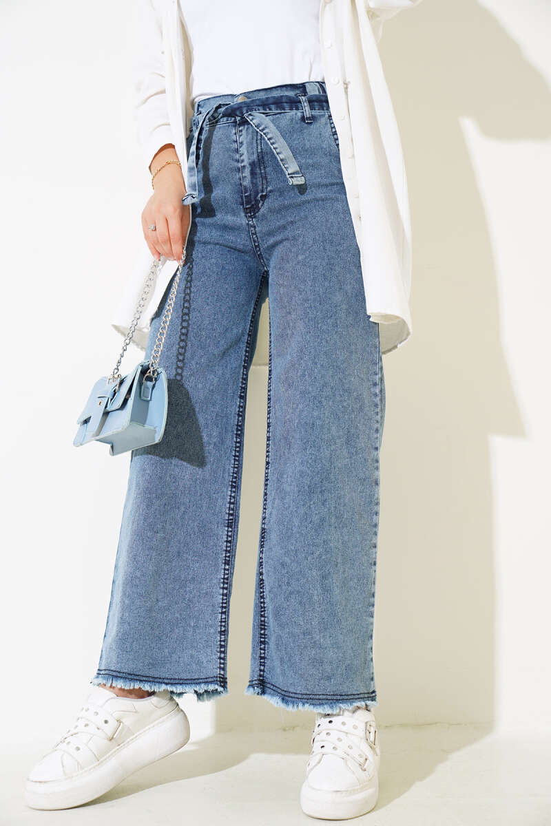 Kuşaklı Paça Püsküllü Kot Pantolon Kot