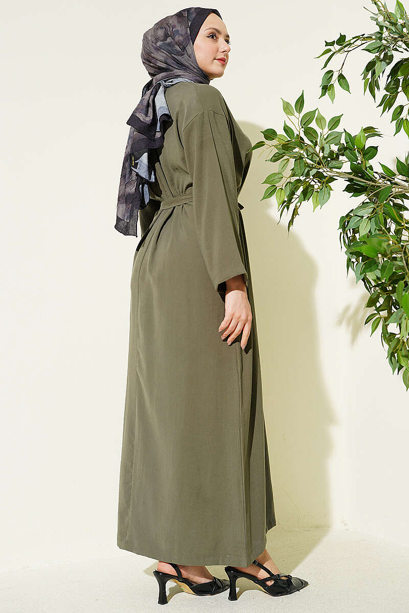 Boydan Brit Düğmeli Kemerli Elbise Kahve