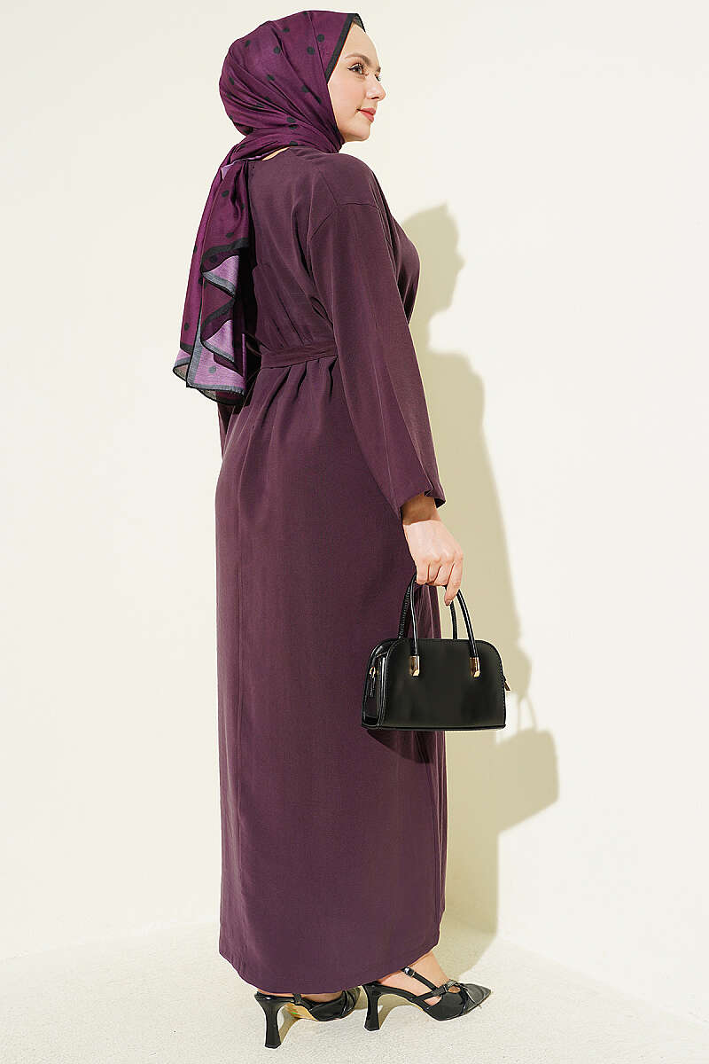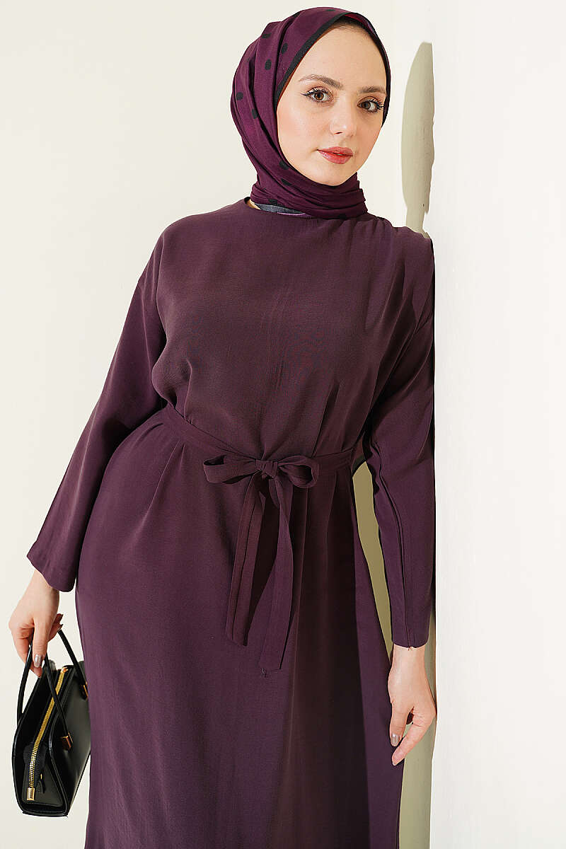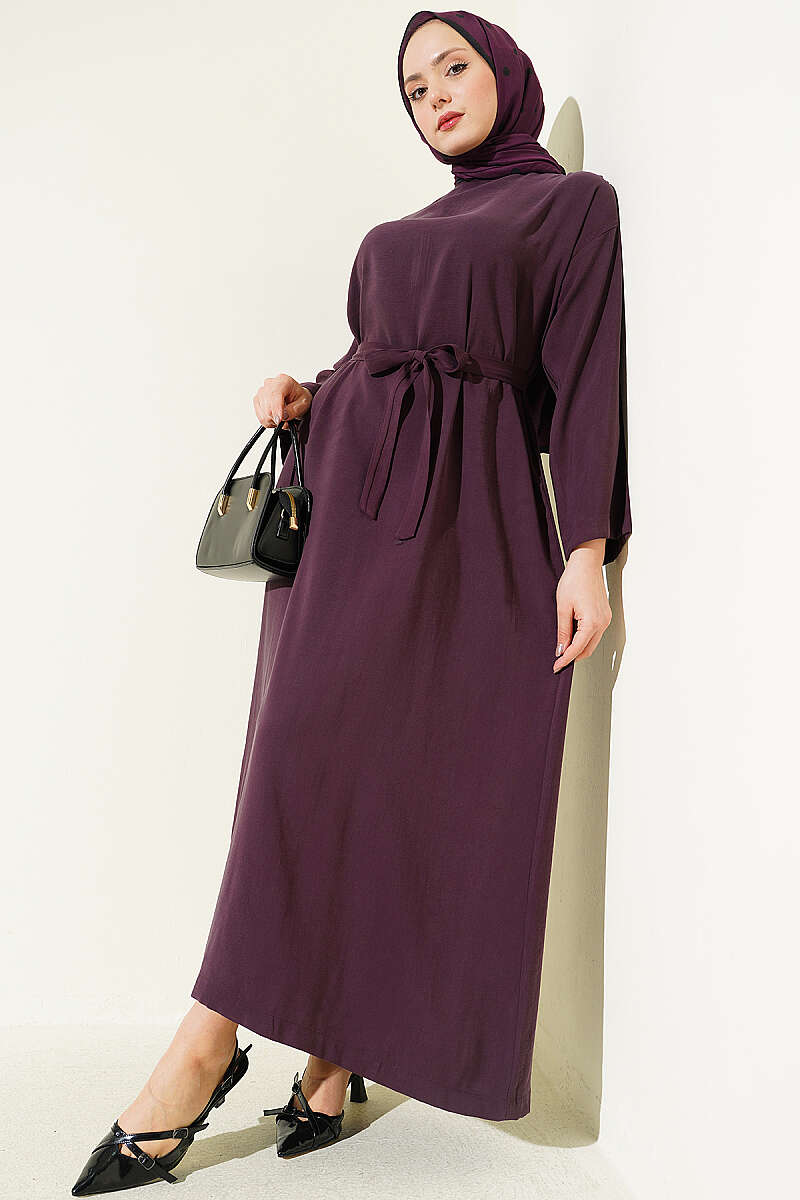 Kuşaklı Salaş Düz Elbise Mürdüm