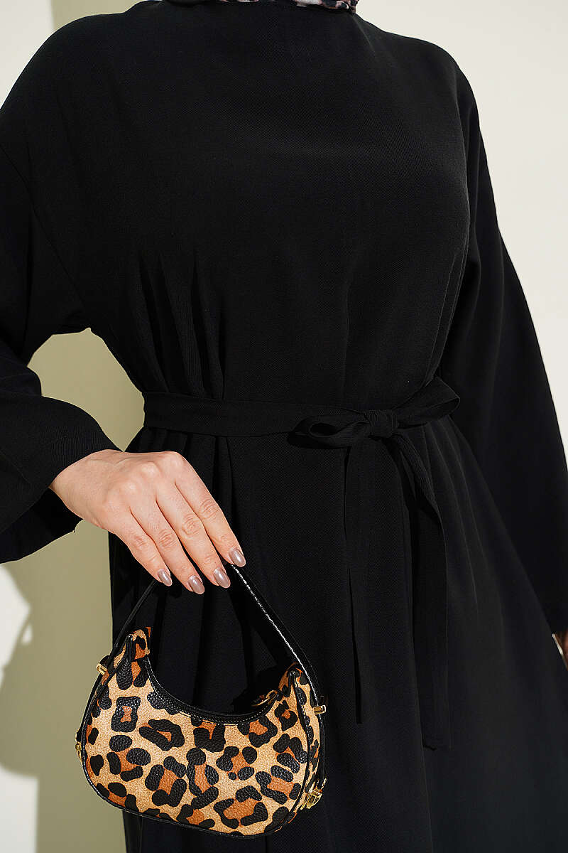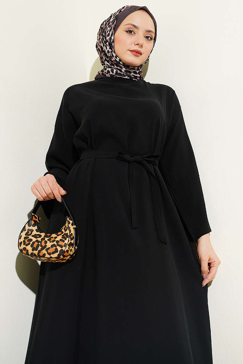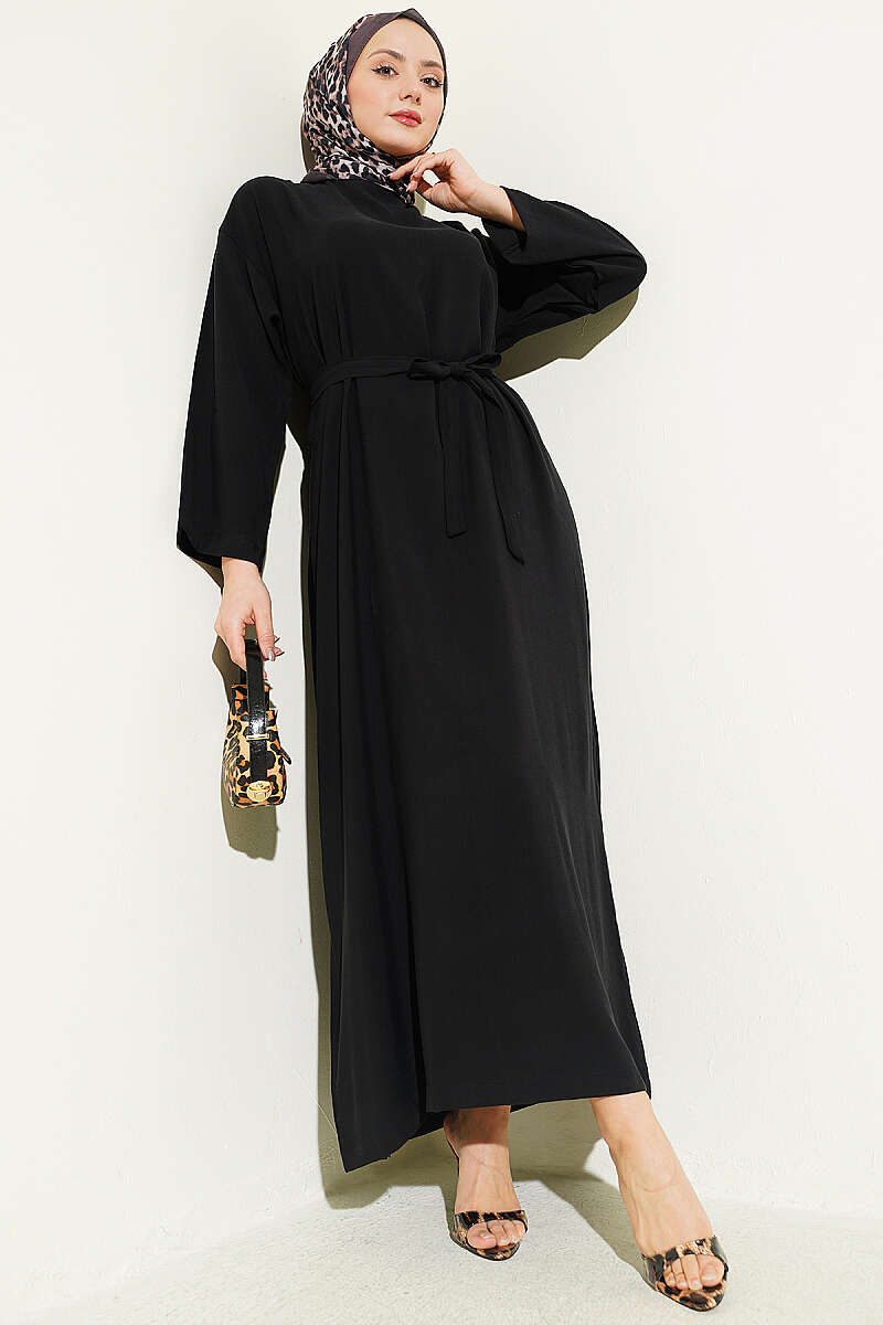 Kuşaklı Salaş Düz Elbise Siyah