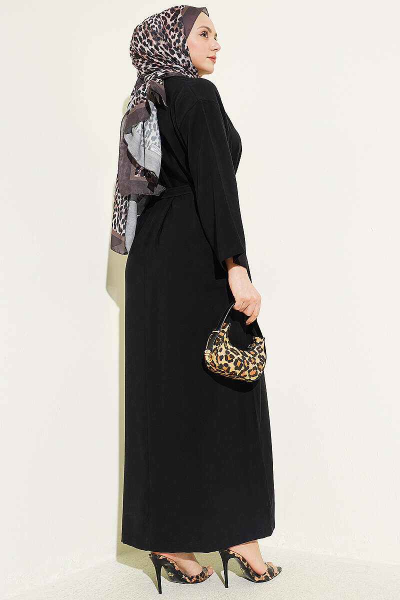 Boydan Brit Düğmeli Kemerli Elbise Siyah