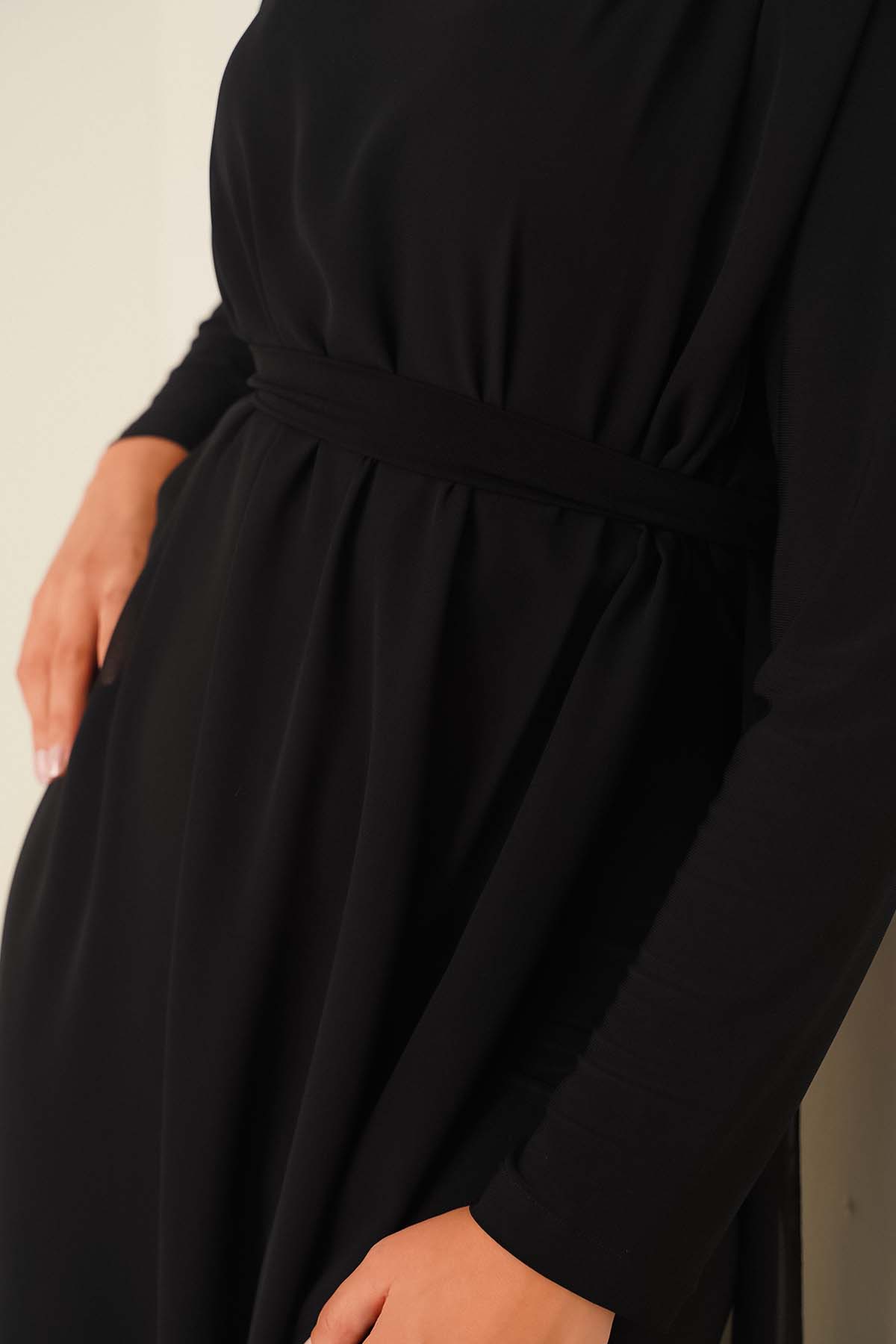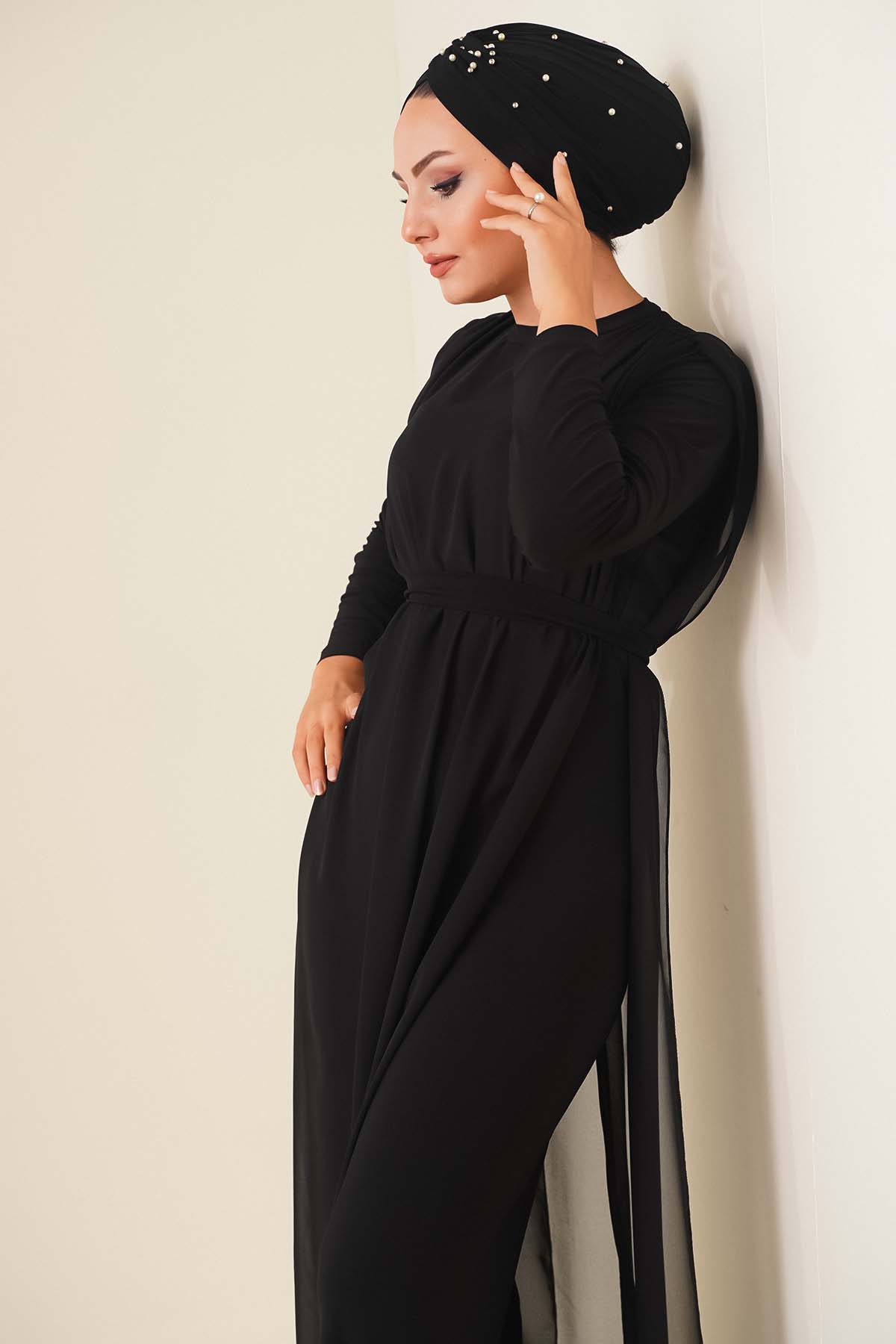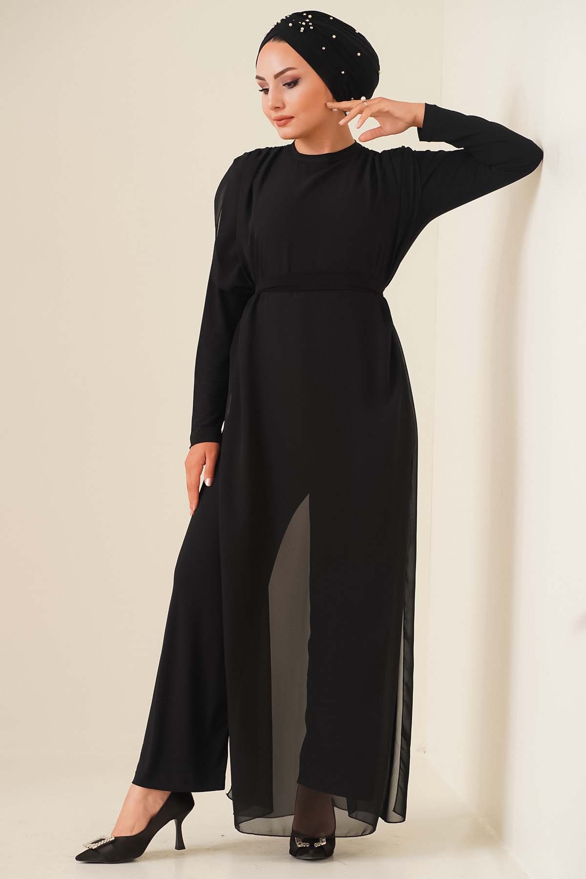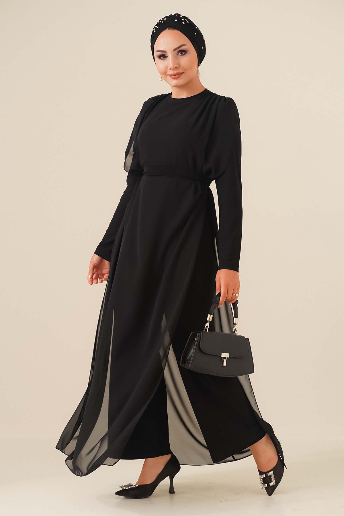 Kuşaklı Şifon Tulum Siyah