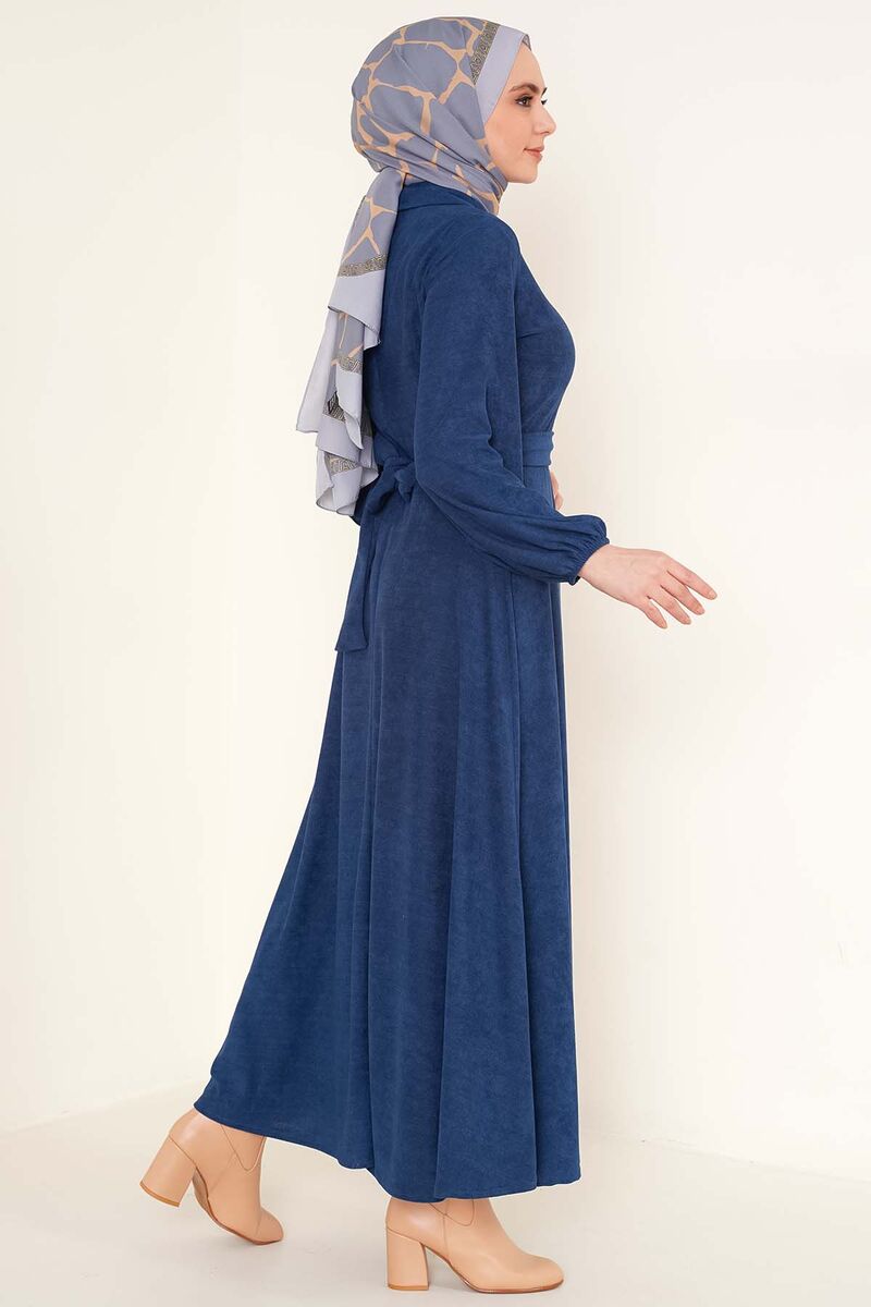 Kuşaklı Yarım Düğemli Elbise Parlement