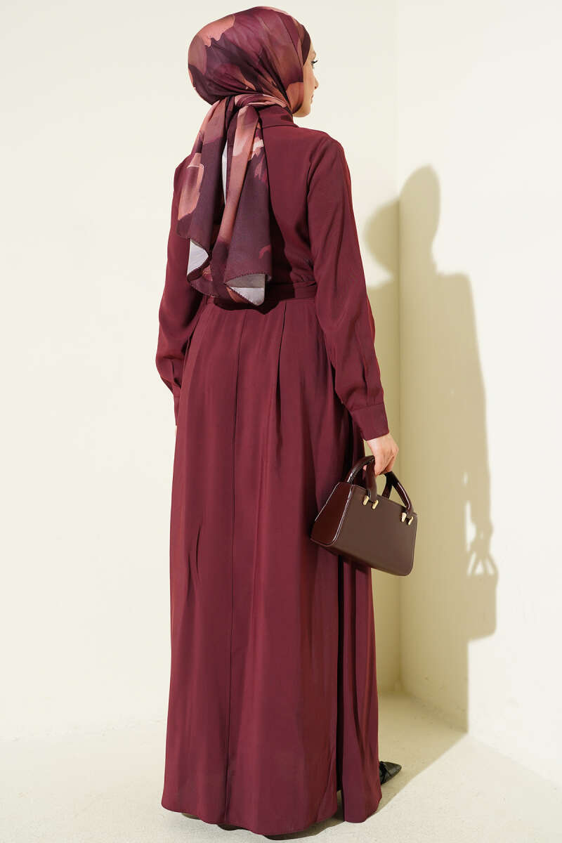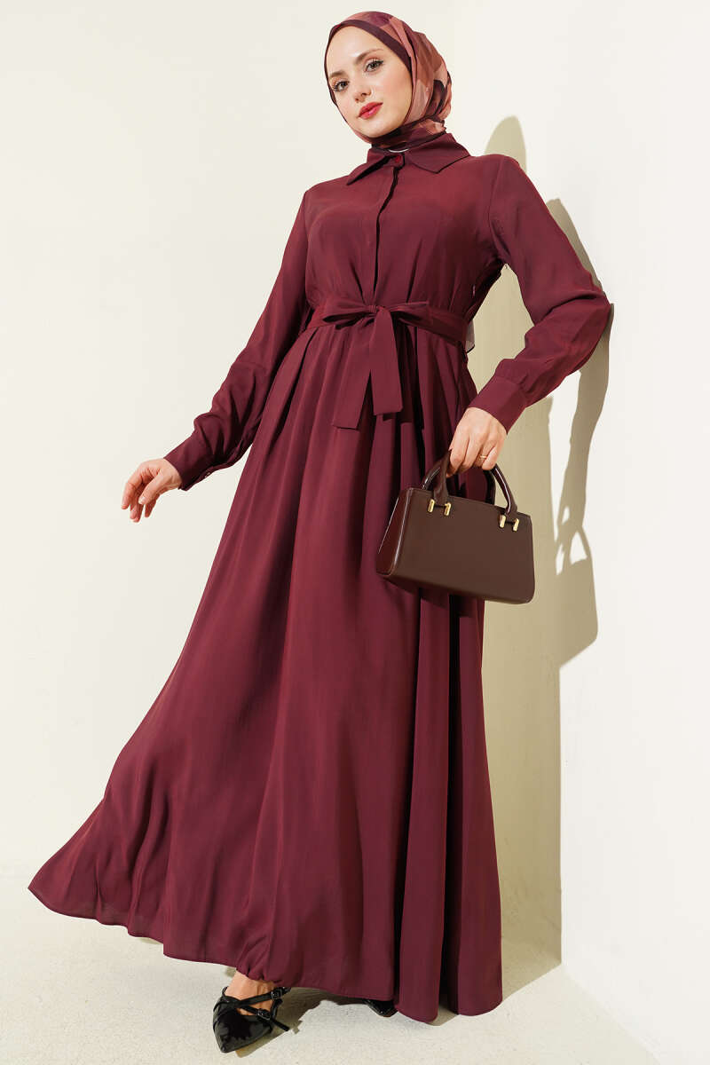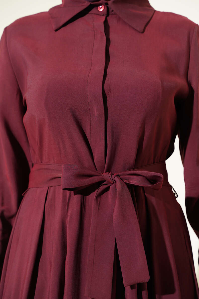 Geniş Kollu Oversize Uzun Gömlek Bordo
