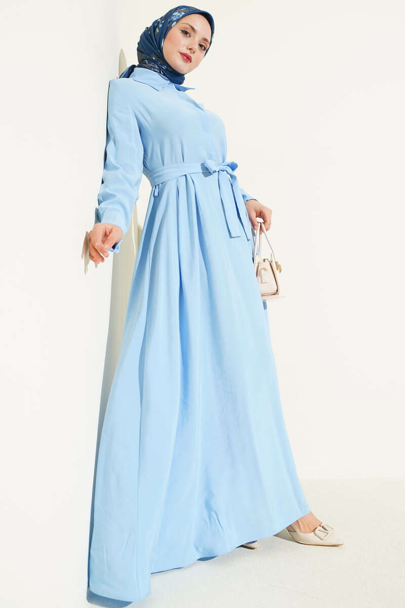 Bel Lastikli Fermuarlı Tensel Elbise Bebe Mavi