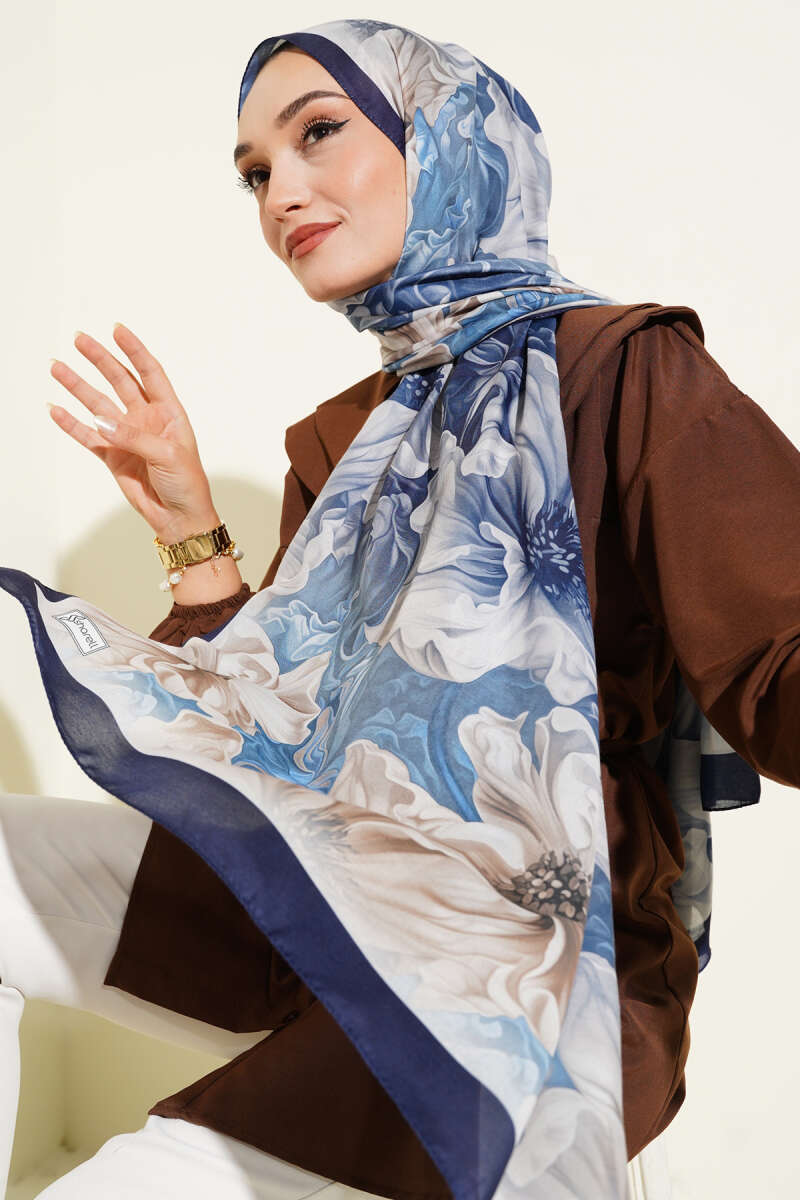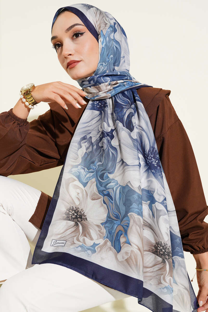 Lacivert Serisi Desenli Şal Asorti 5