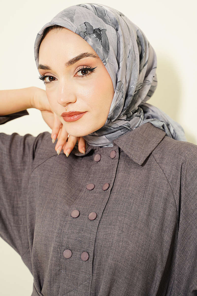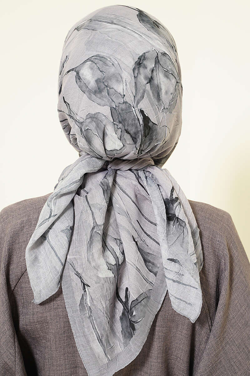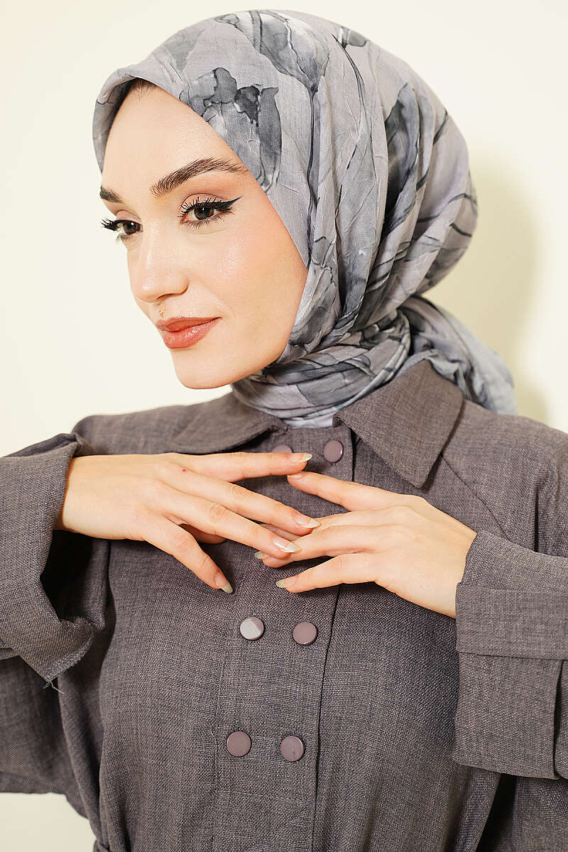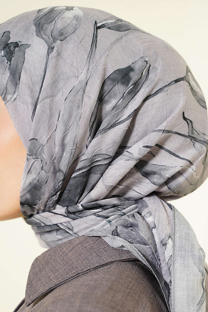 Lale Desen Bambu Kraş Eşarp Antrasit