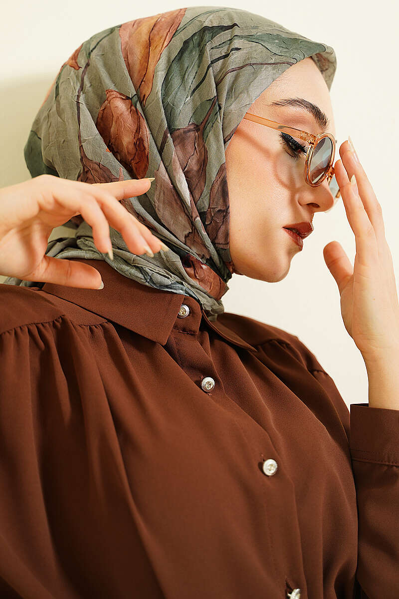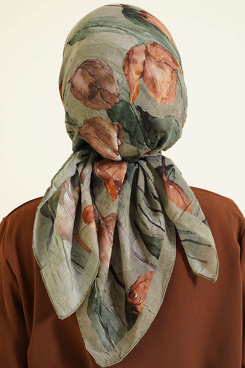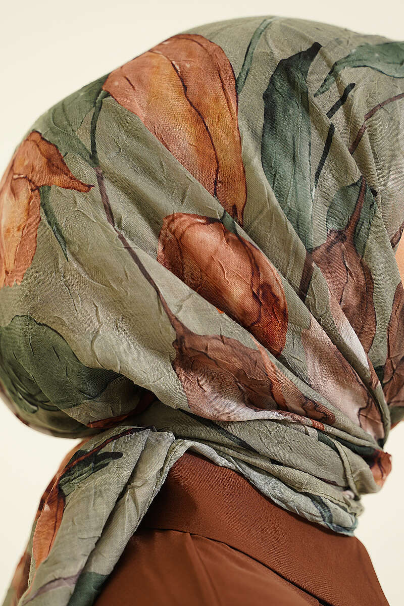 Lale Desen Bambu Kraş Eşarp Haki