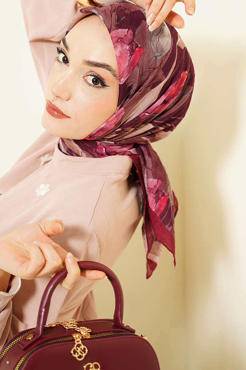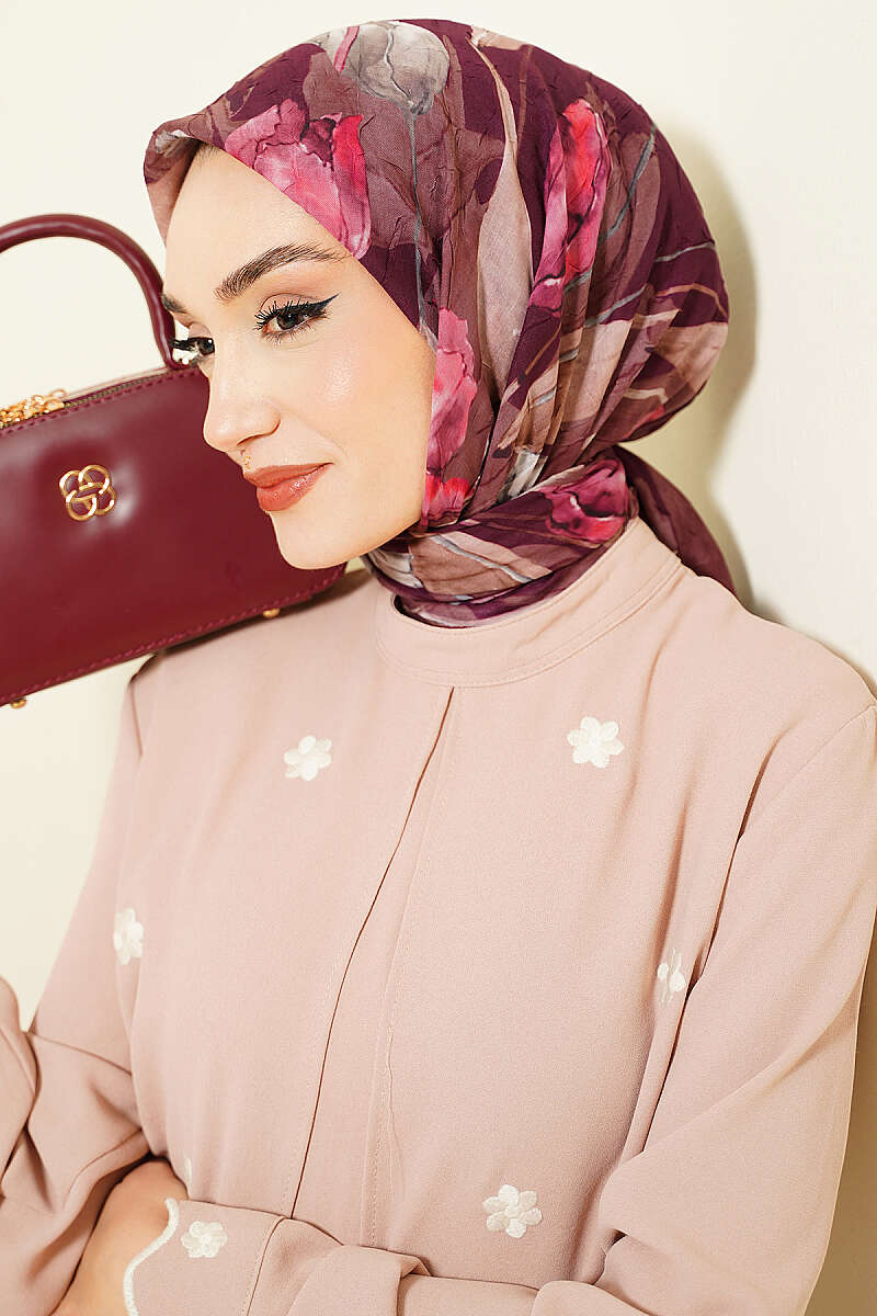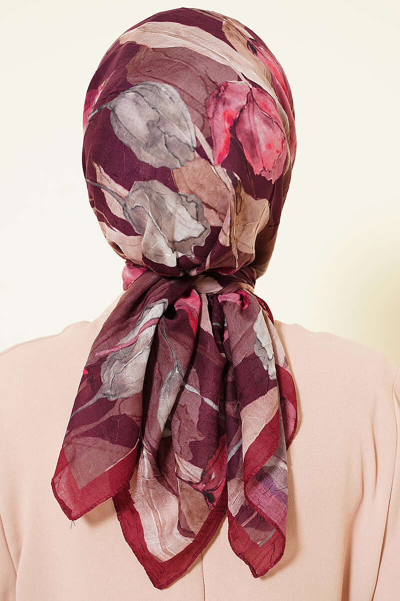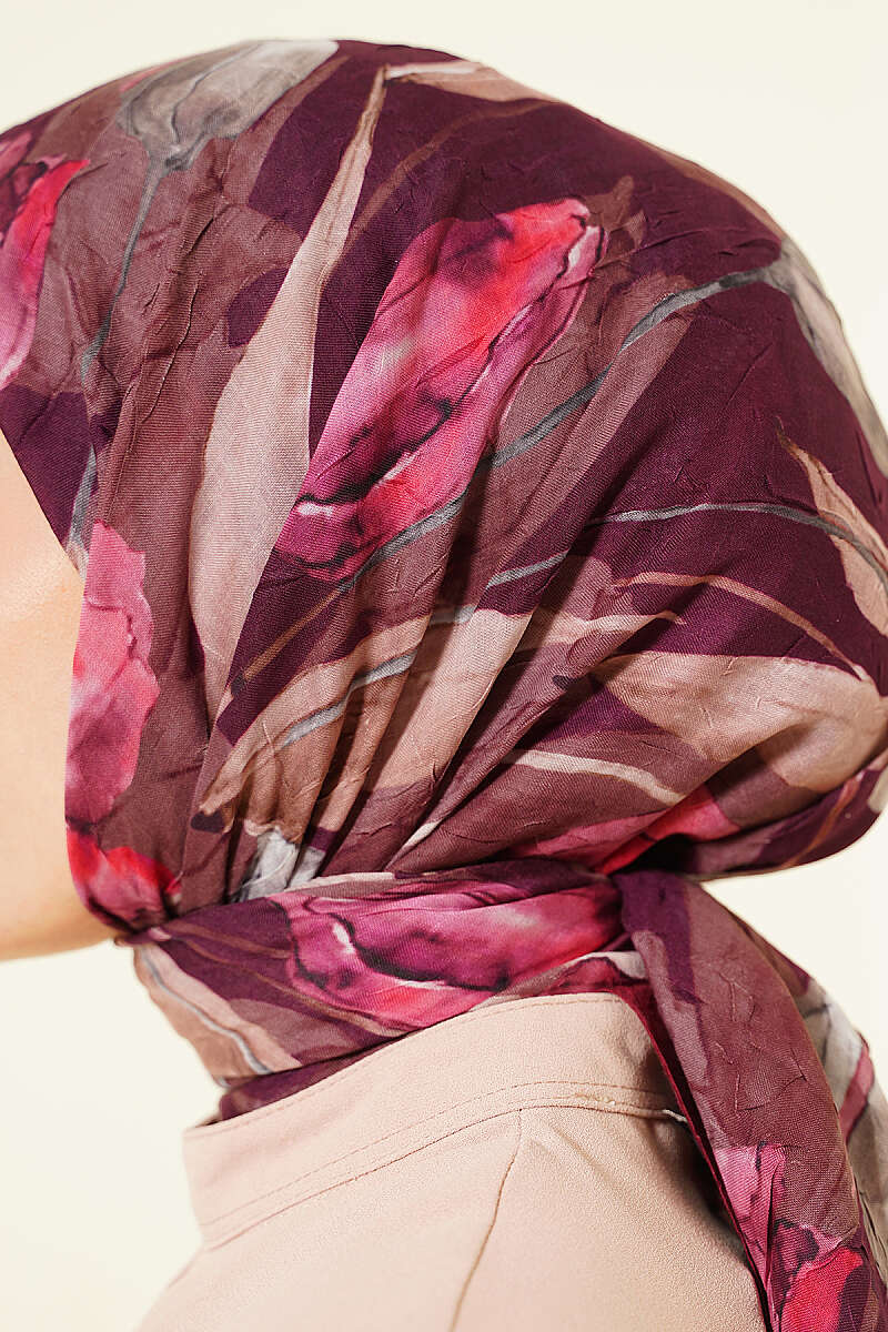 Lale Desen Bambu Kraş Eşarp Mürdüm